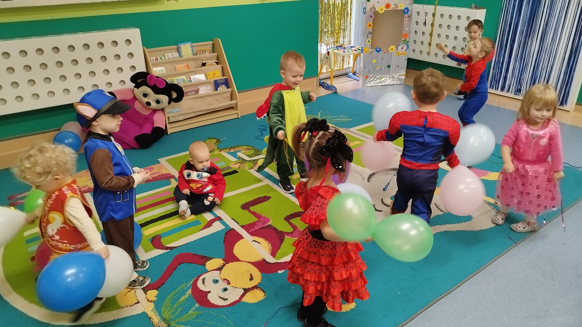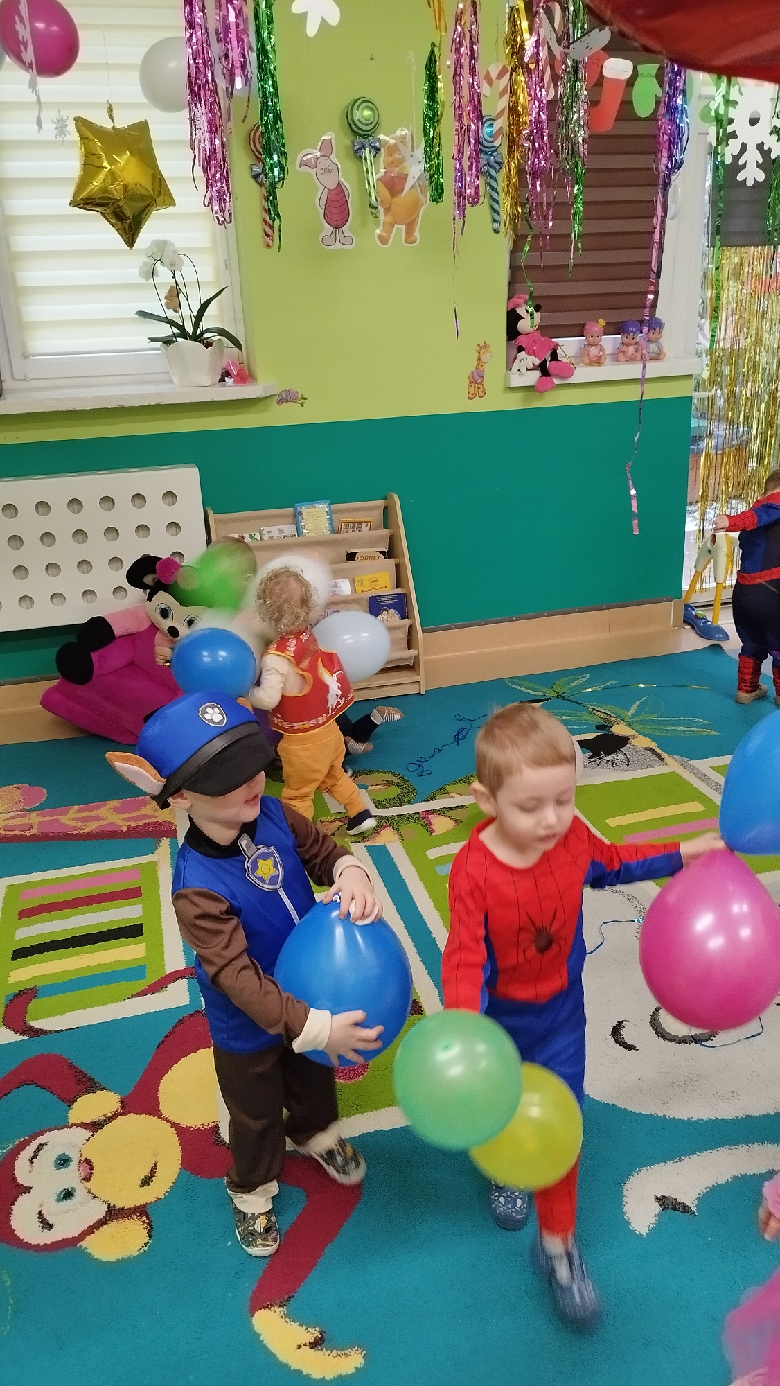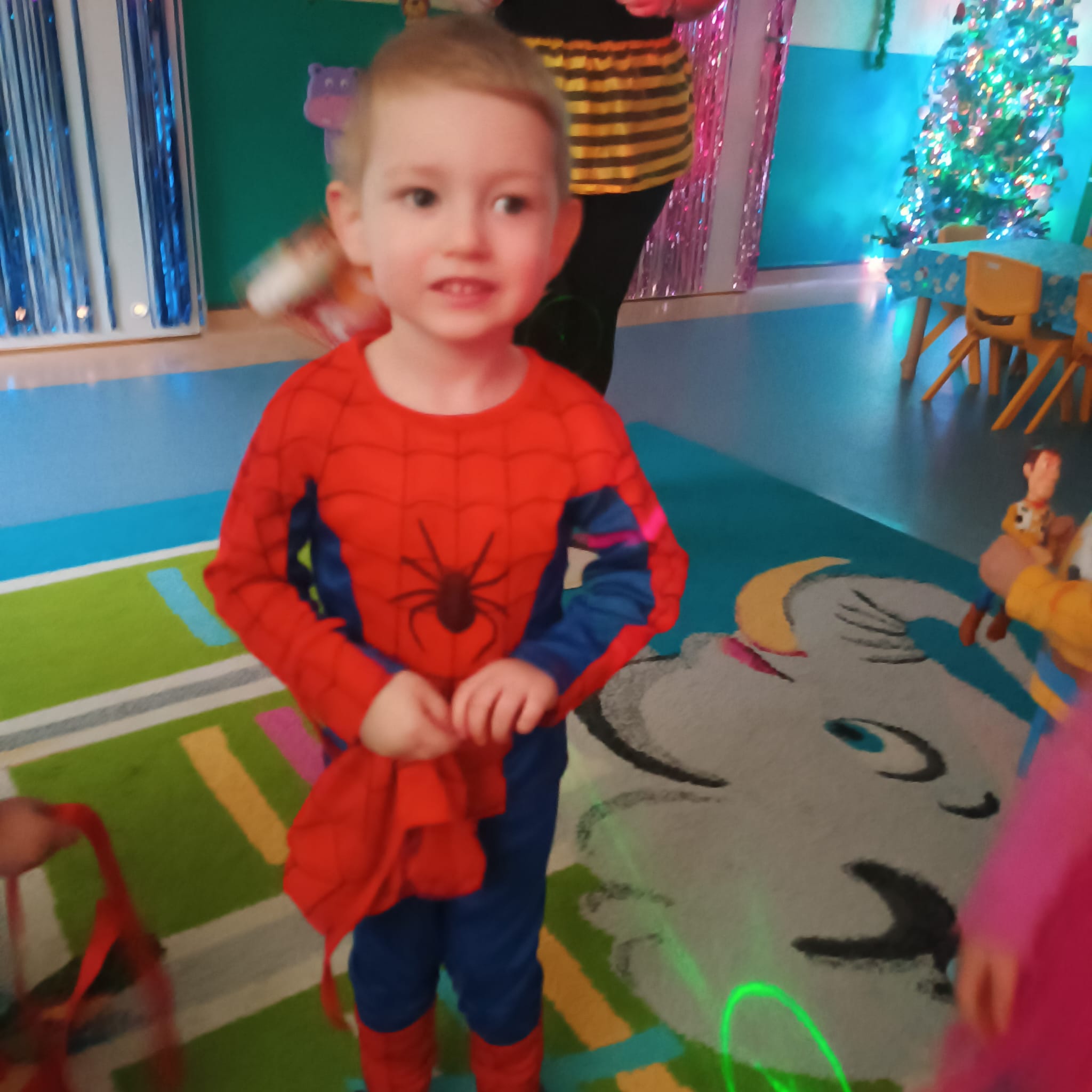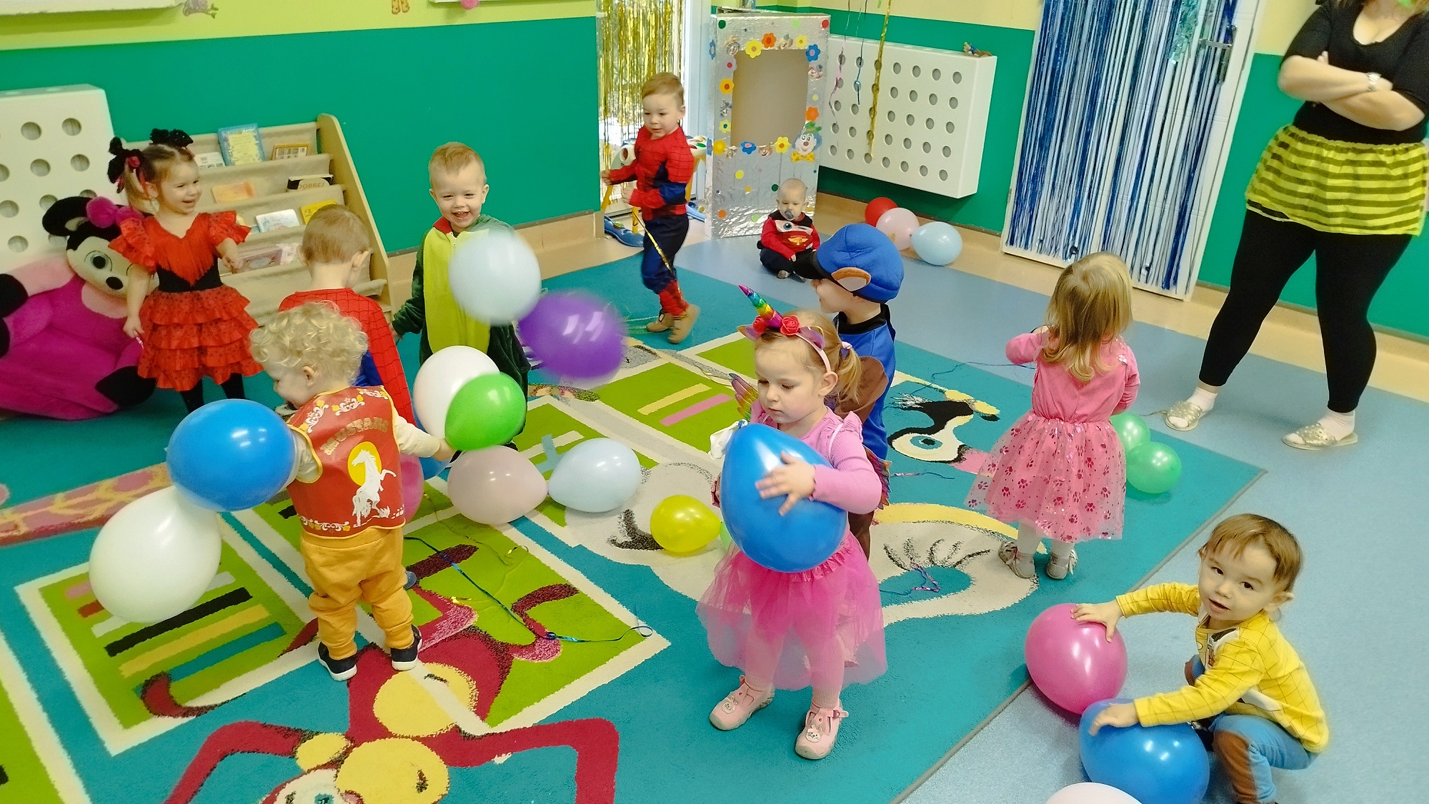 Każde z dzieci przebrało się w bajeczny strój- nie mogło zabraknąć Spidermana, Sky, dinozaura czy jednorożca :)
