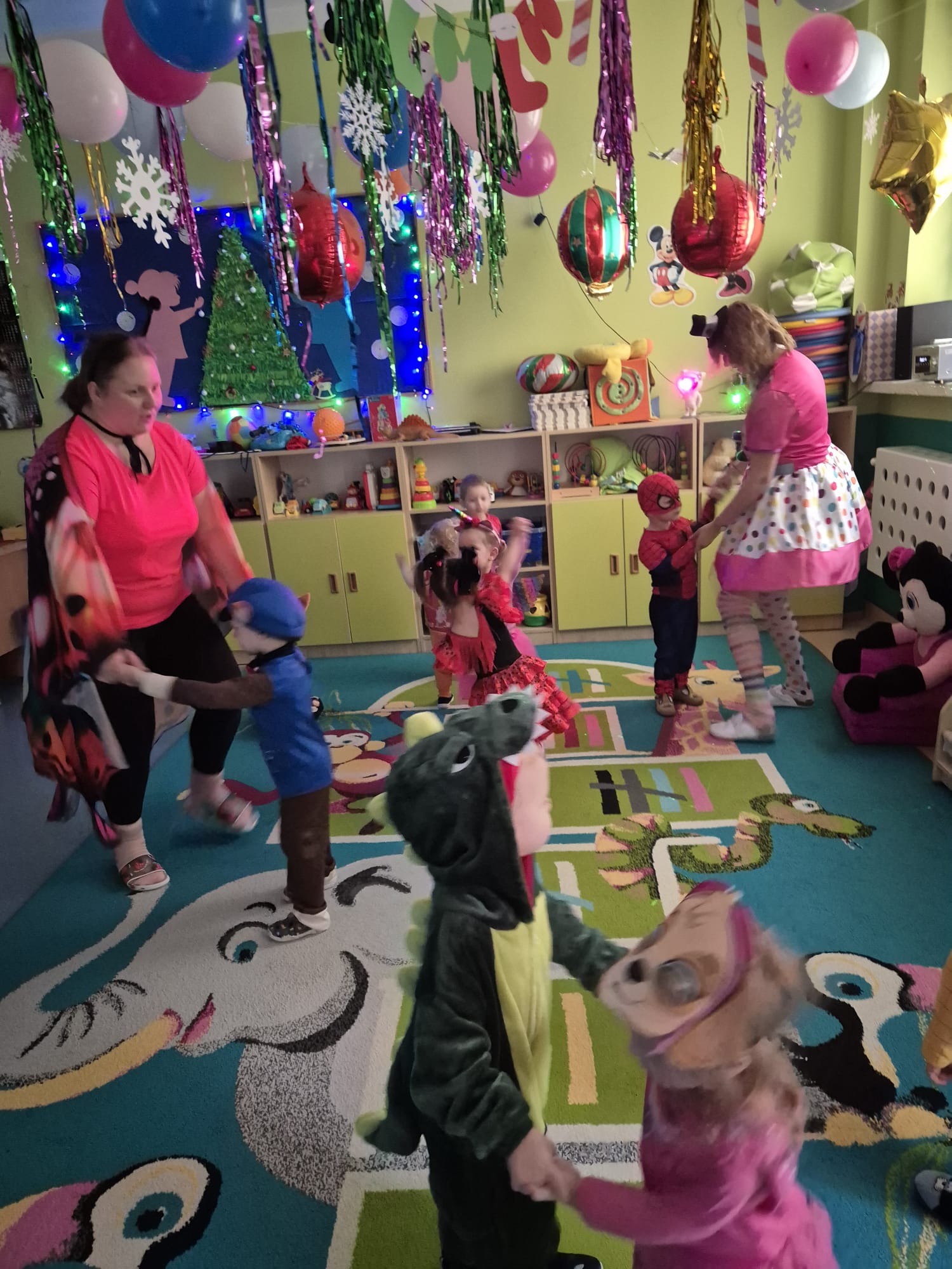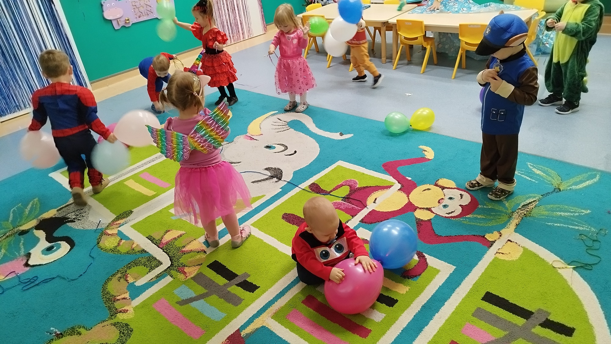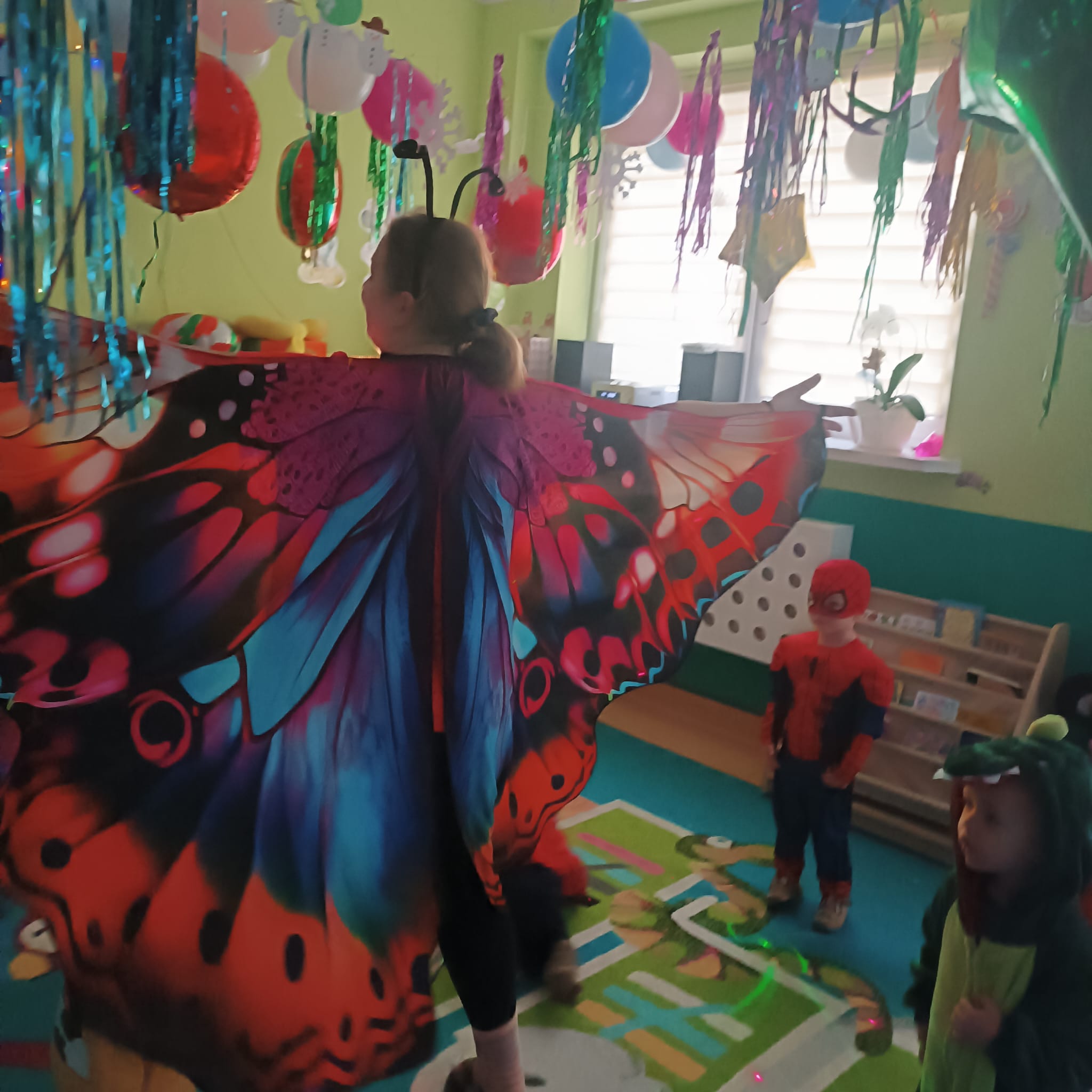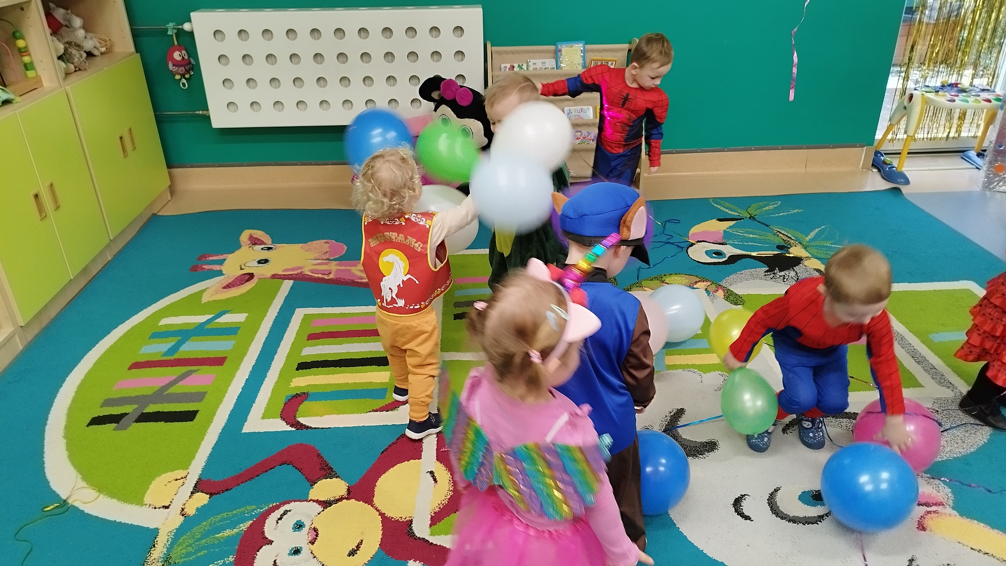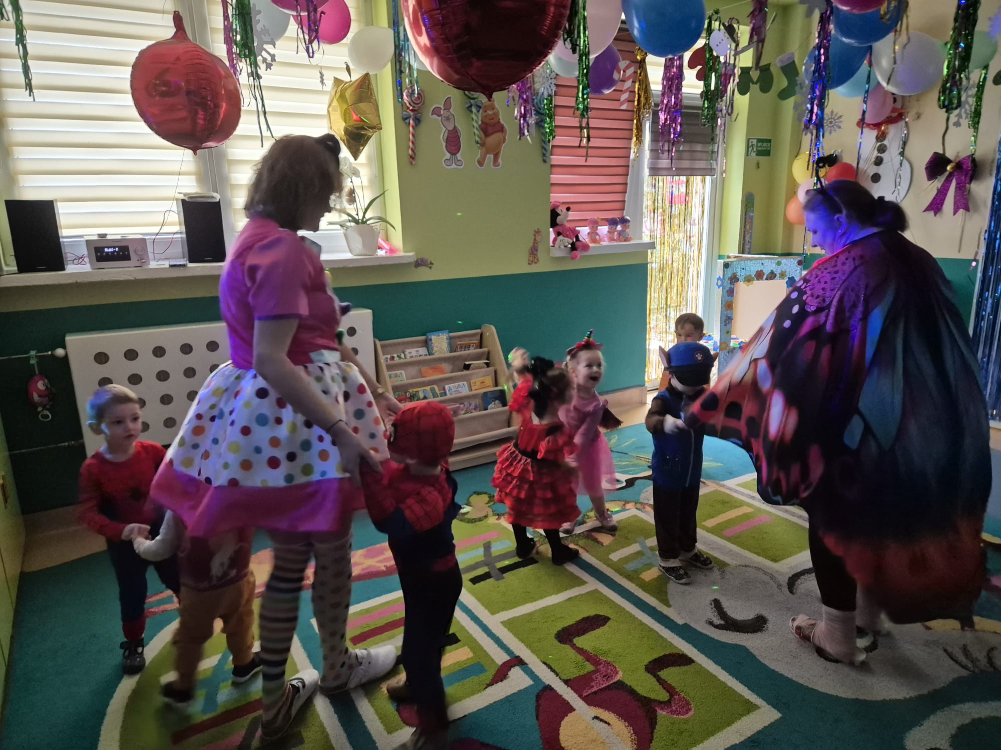 Każde z dzieci przebrało się w bajeczny strój- nie mogło zabraknąć Spidermana, Sky, dinozaura czy jednorożca :)