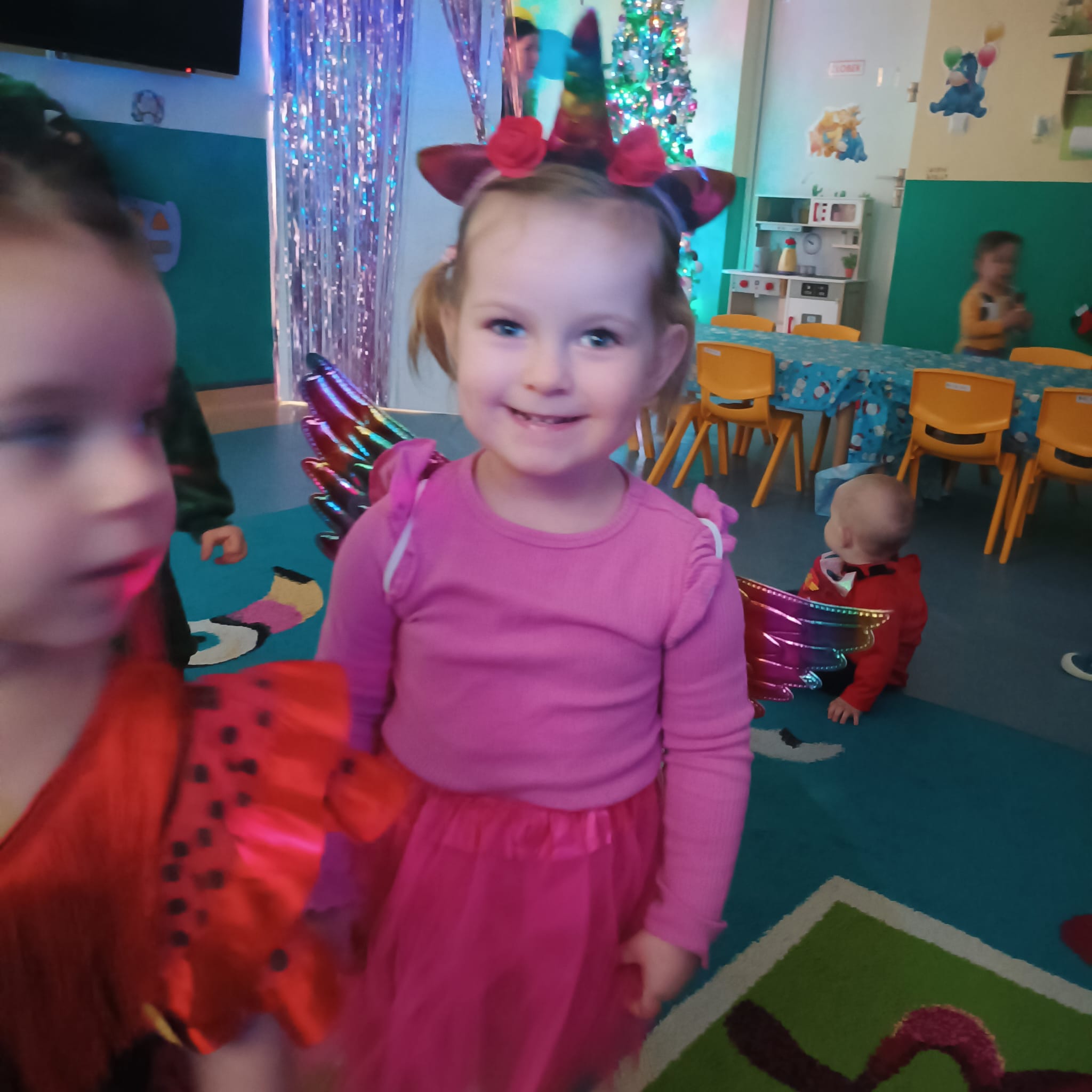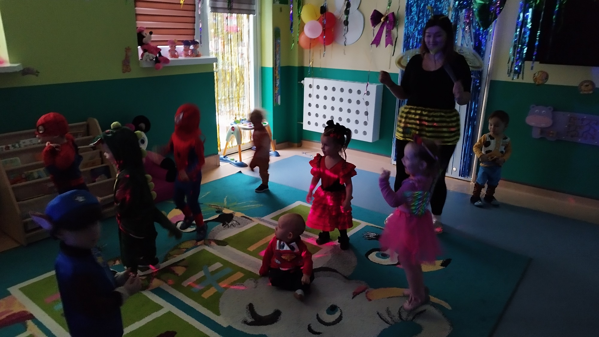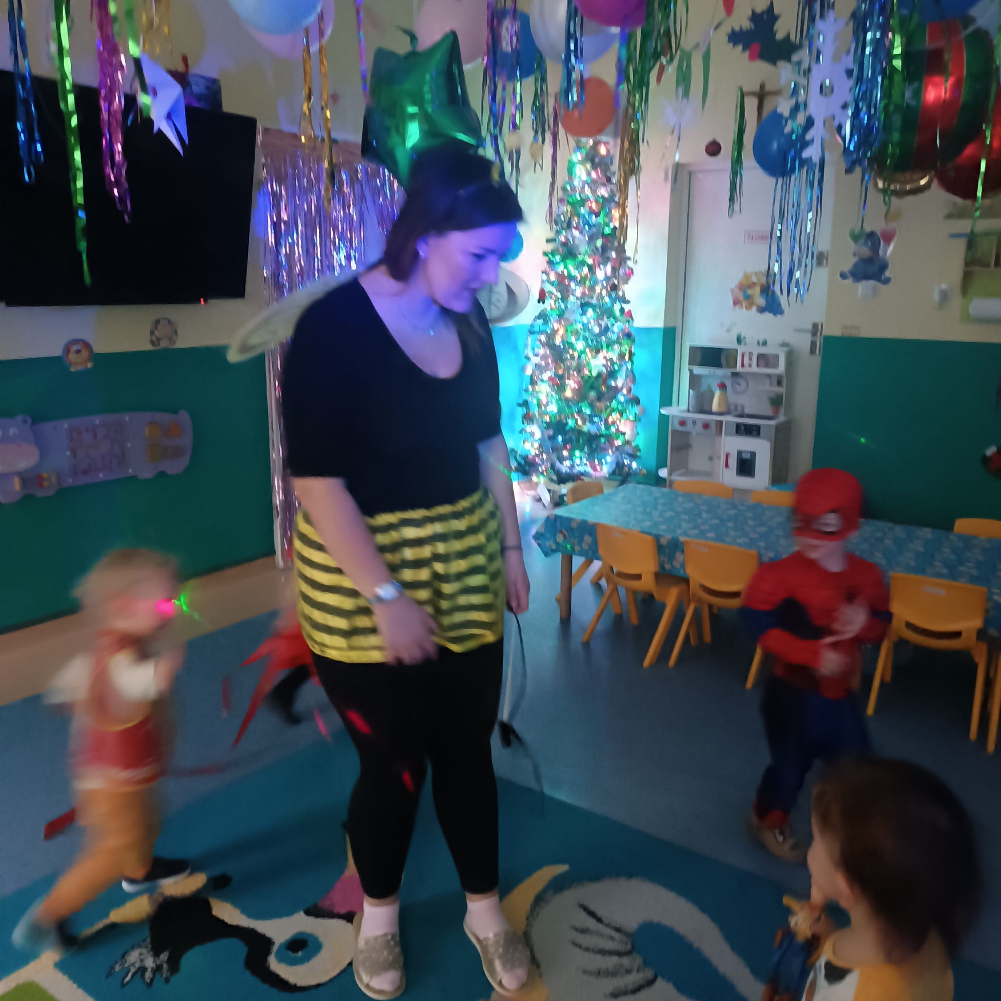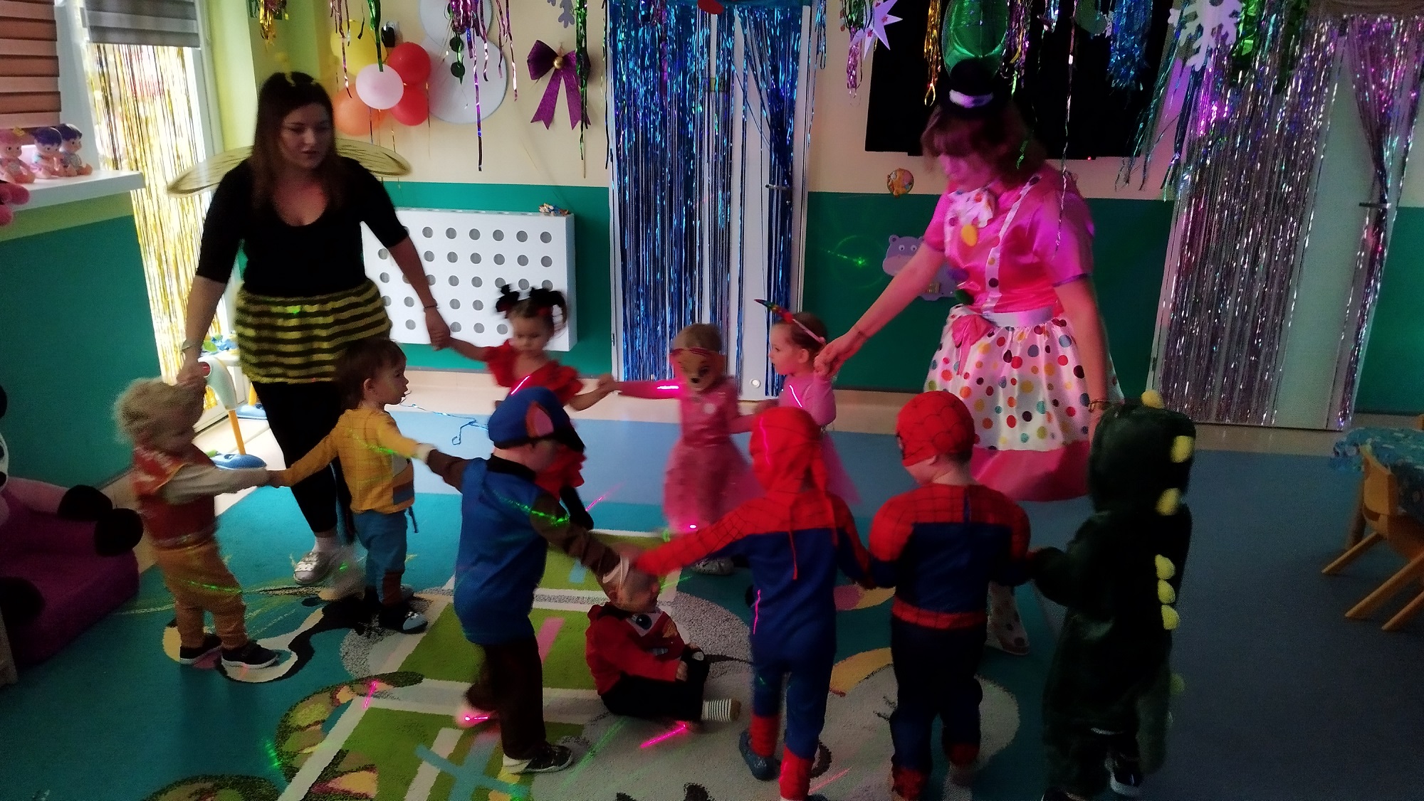 Każde z dzieci przebrało się w bajeczny strój- nie mogło zabraknąć Spidermana, Sky, dinozaura czy jednorożca :)