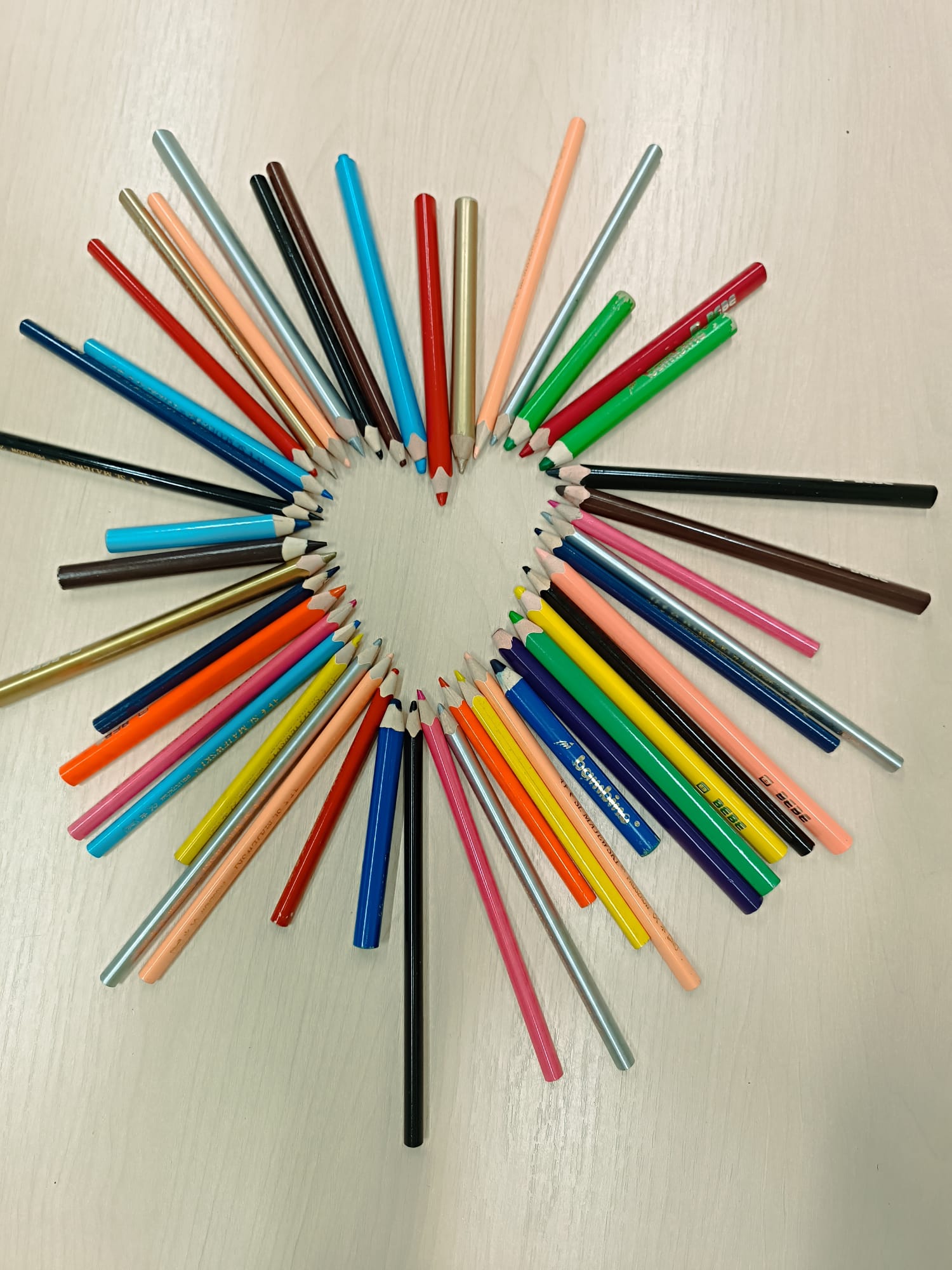 Dzieci za pomocą kredek dzieci doskonaliły dziś znajomość kolorów szukając w sali kredki w danym kolorze wywołanym przez opiekunkę, a także rozróżnianie kolorów segregując kredki.