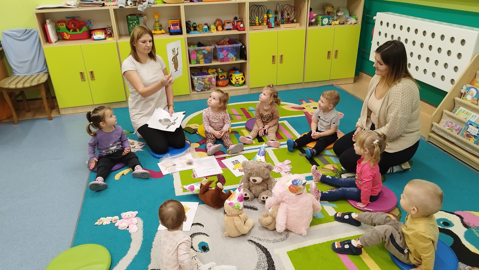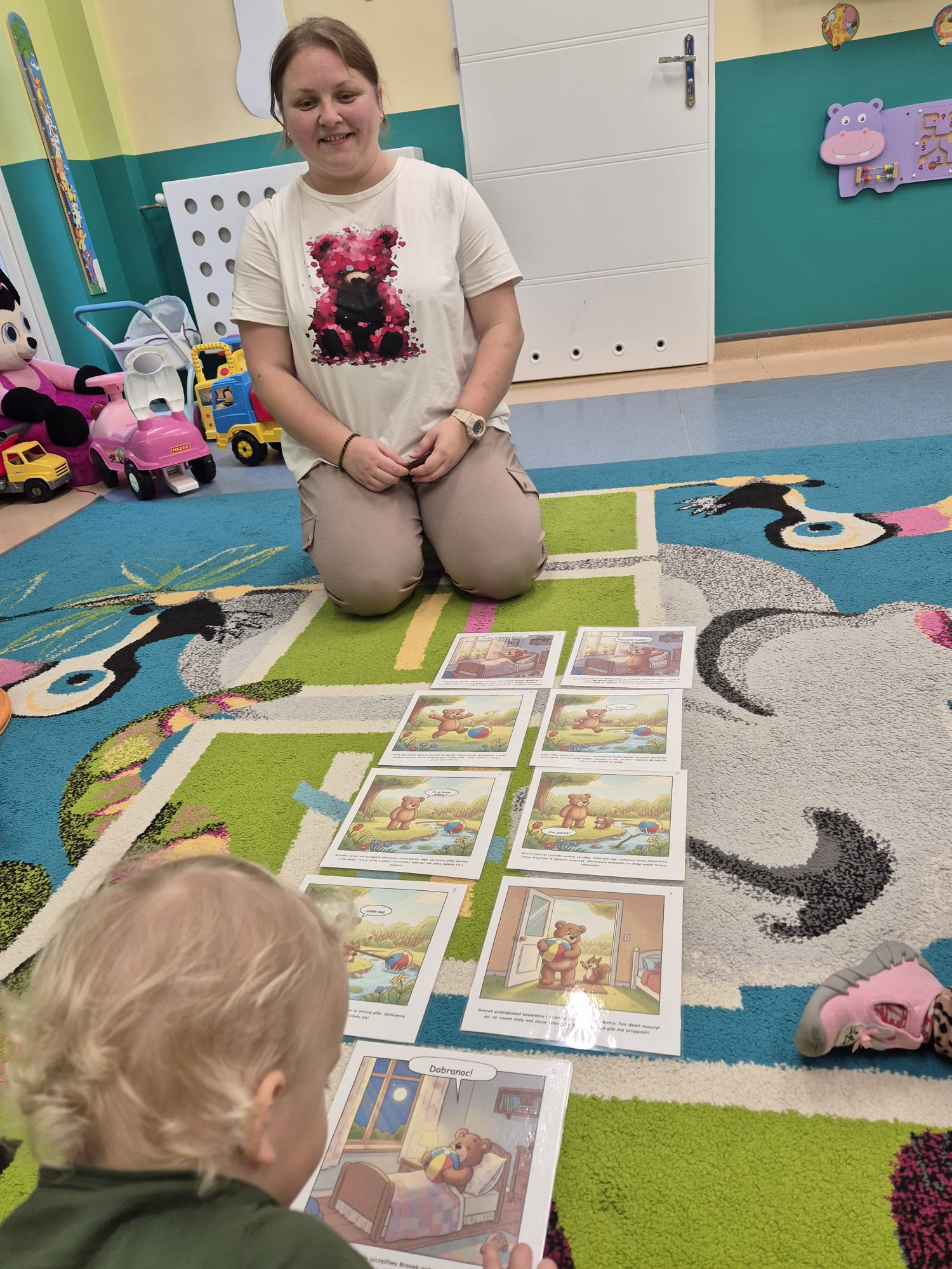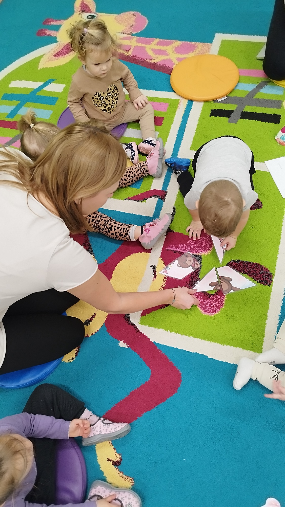 Dzieci próbowały odganąć jak nazywają się misie na pokazywanych przez opiekunkę obrazkach, nie zabrakło Misia Uszatka, Kubusia Puchatka czy Gumisiów.