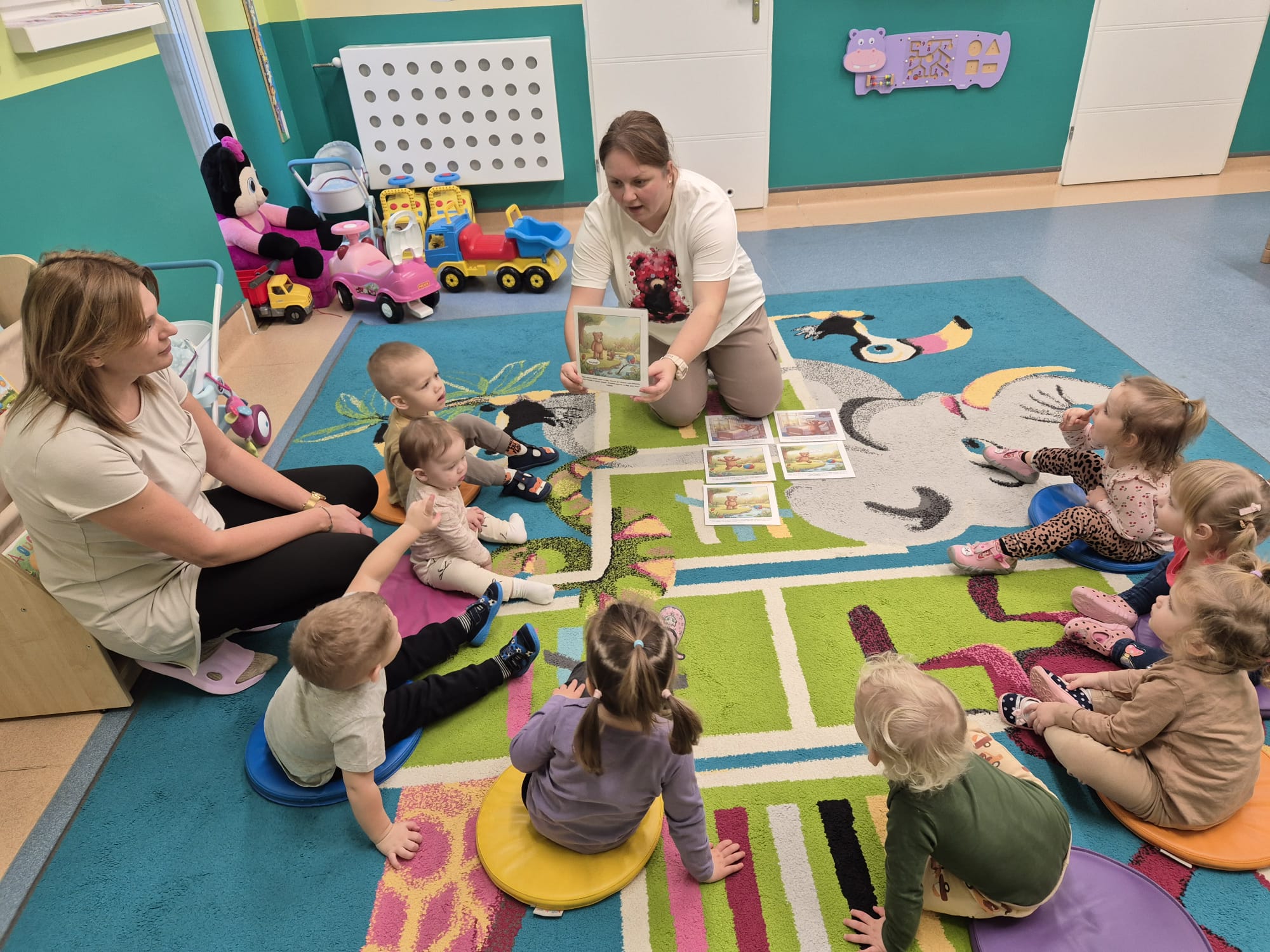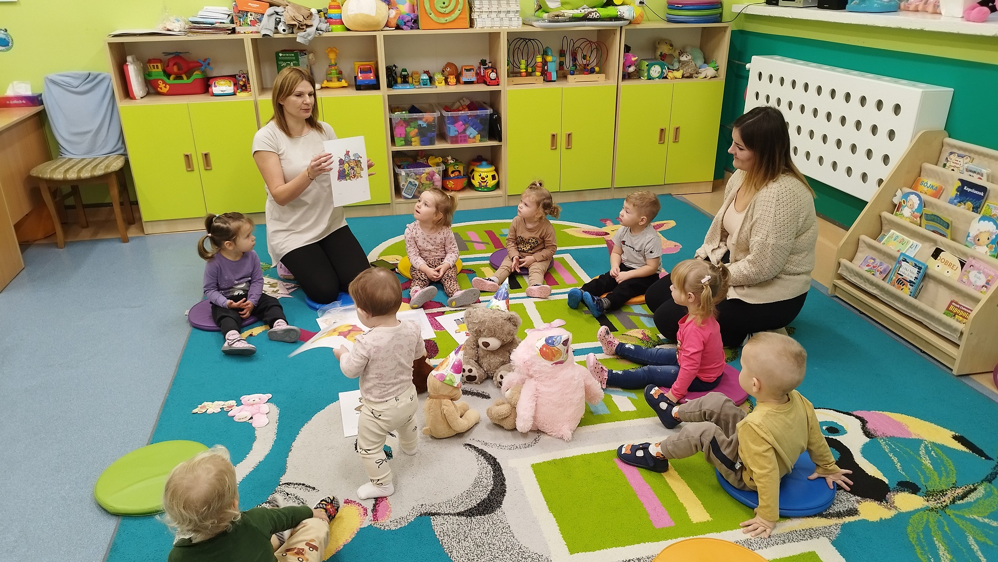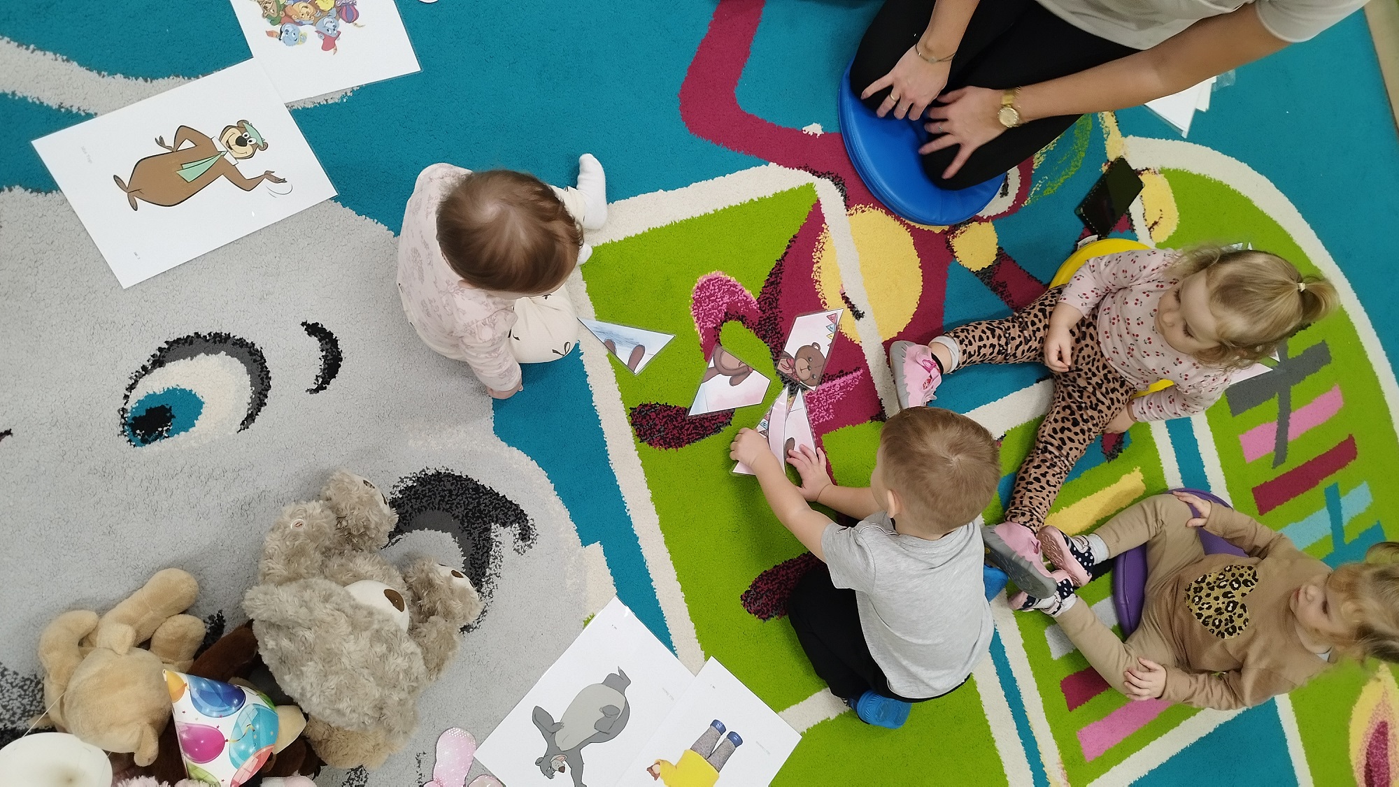 Dzieci próbowały odganąć jak nazywają się misie na pokazywanych przez opiekunkę obrazkach, nie zabrakło Misia Uszatka, Kubusia Puchatka czy Gumisiów.