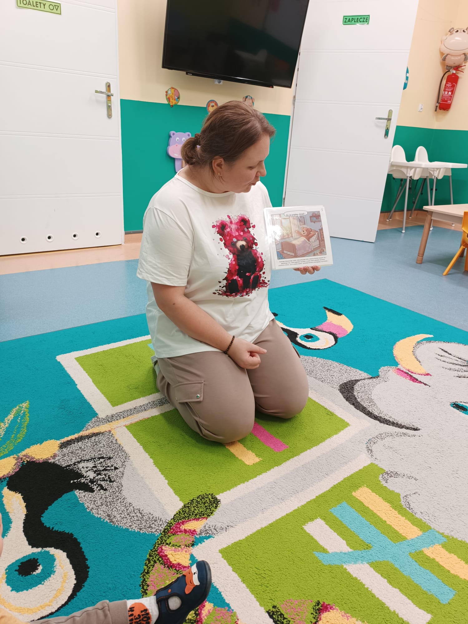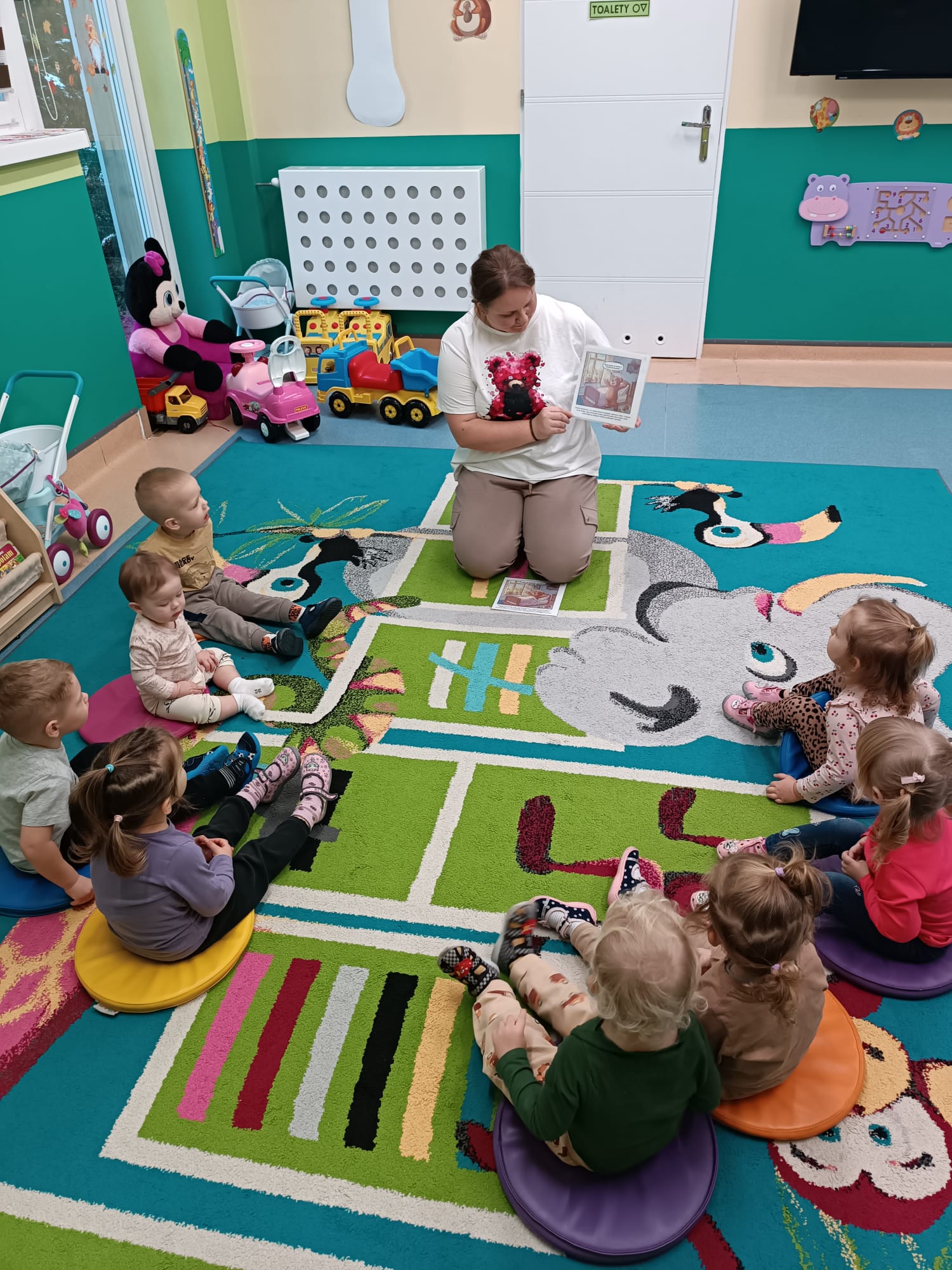 Następnie wszyscy w skupieniu wysłuchali opowiadania prezentowanego przez opiekunkę o przygodzie misia Bronka.