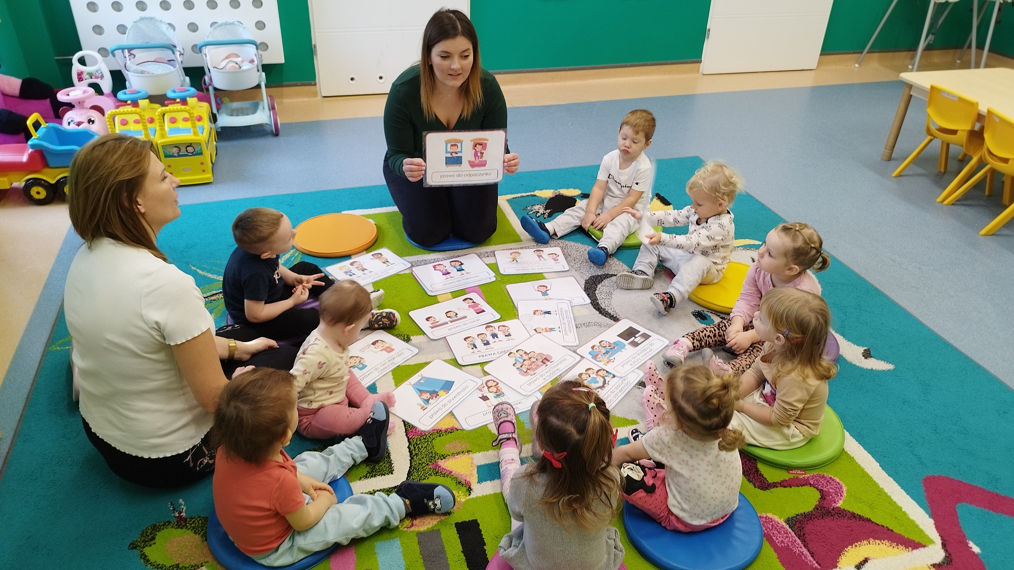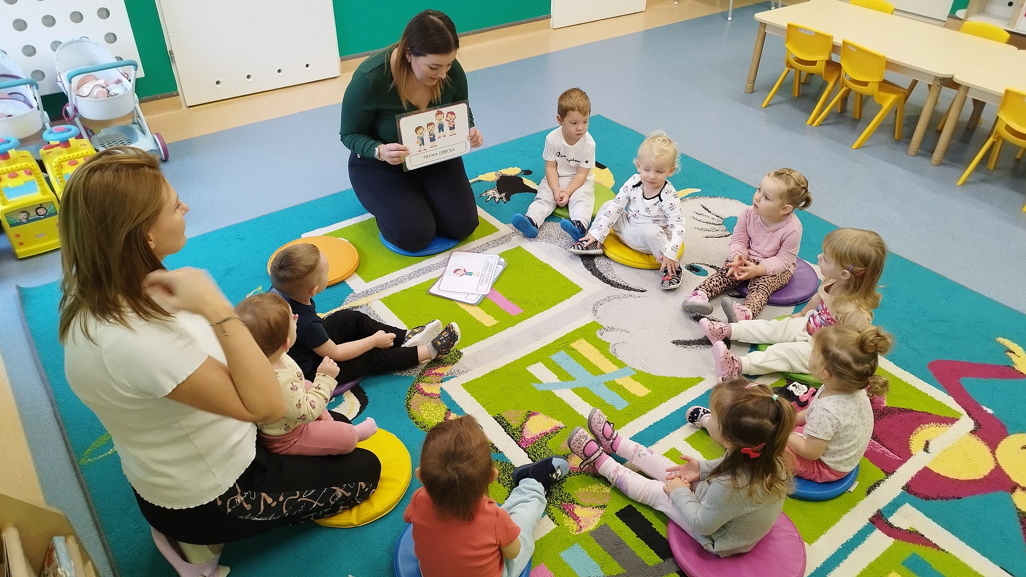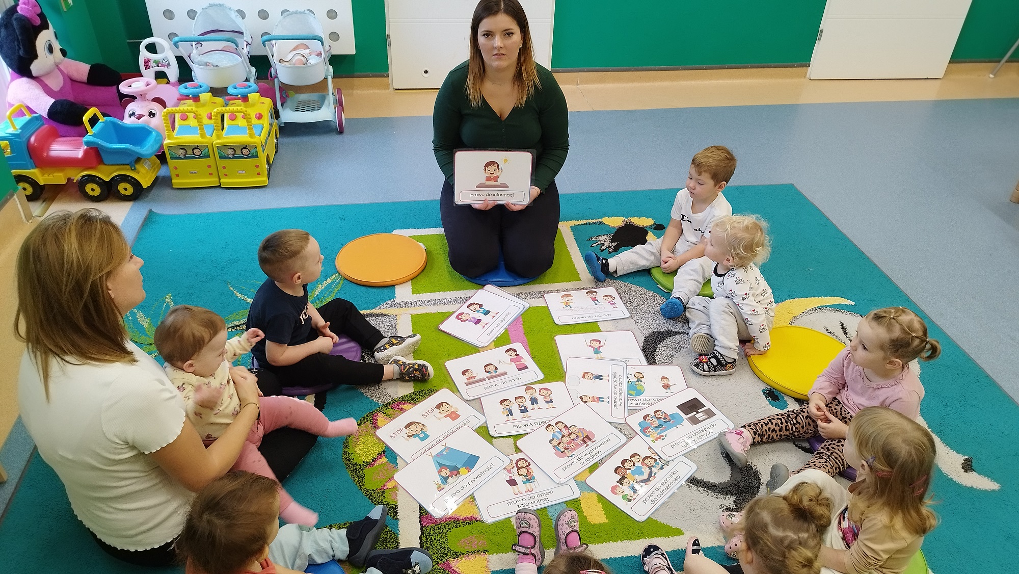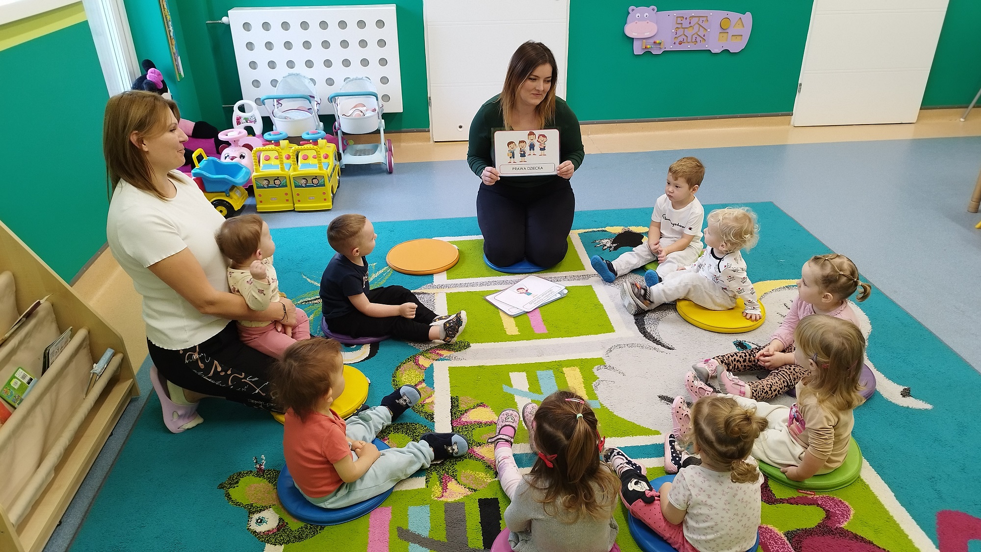 Żłobkowe maluchy w skupieniu słuchały , co o ich prawach opowiadała im ciocia oraz przyglądały się przedstawianym ilustracjom.