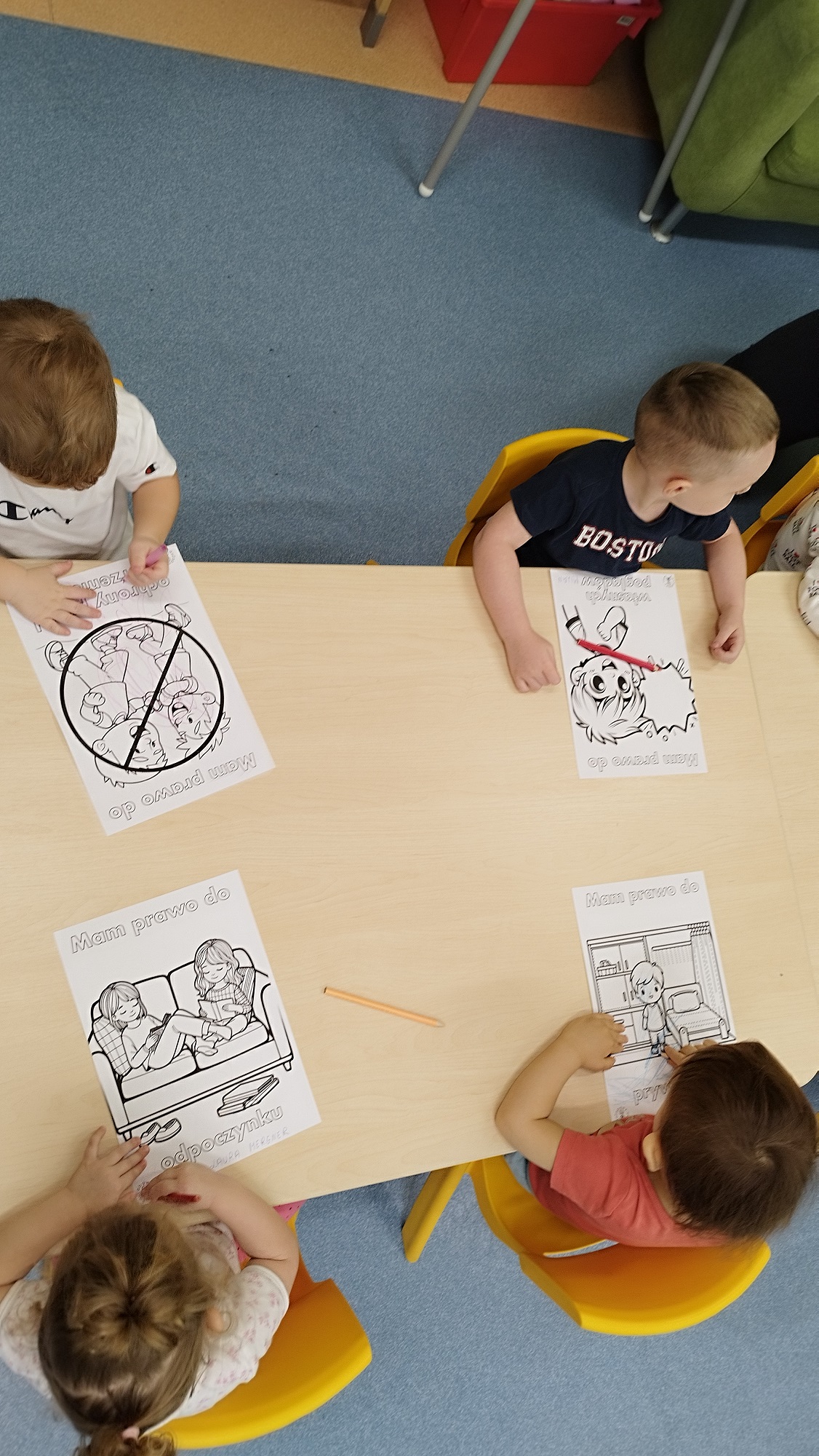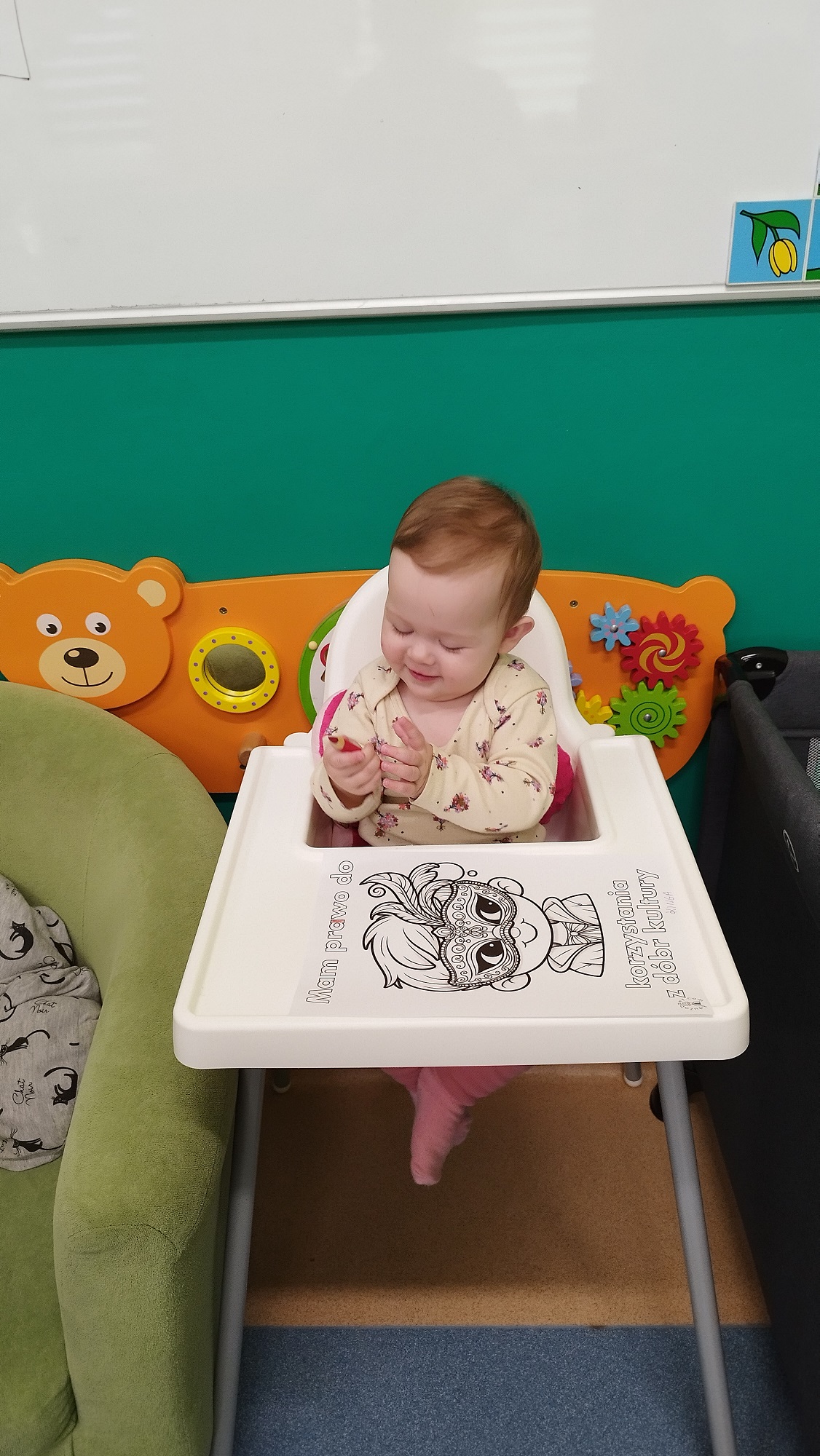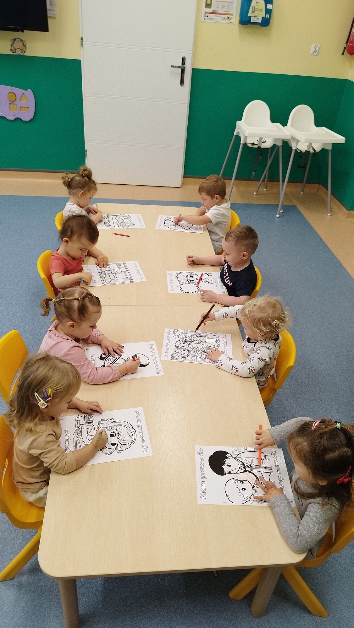 Następnie przy stoliku z ochotą zabrały się do kolorowania obrazków.