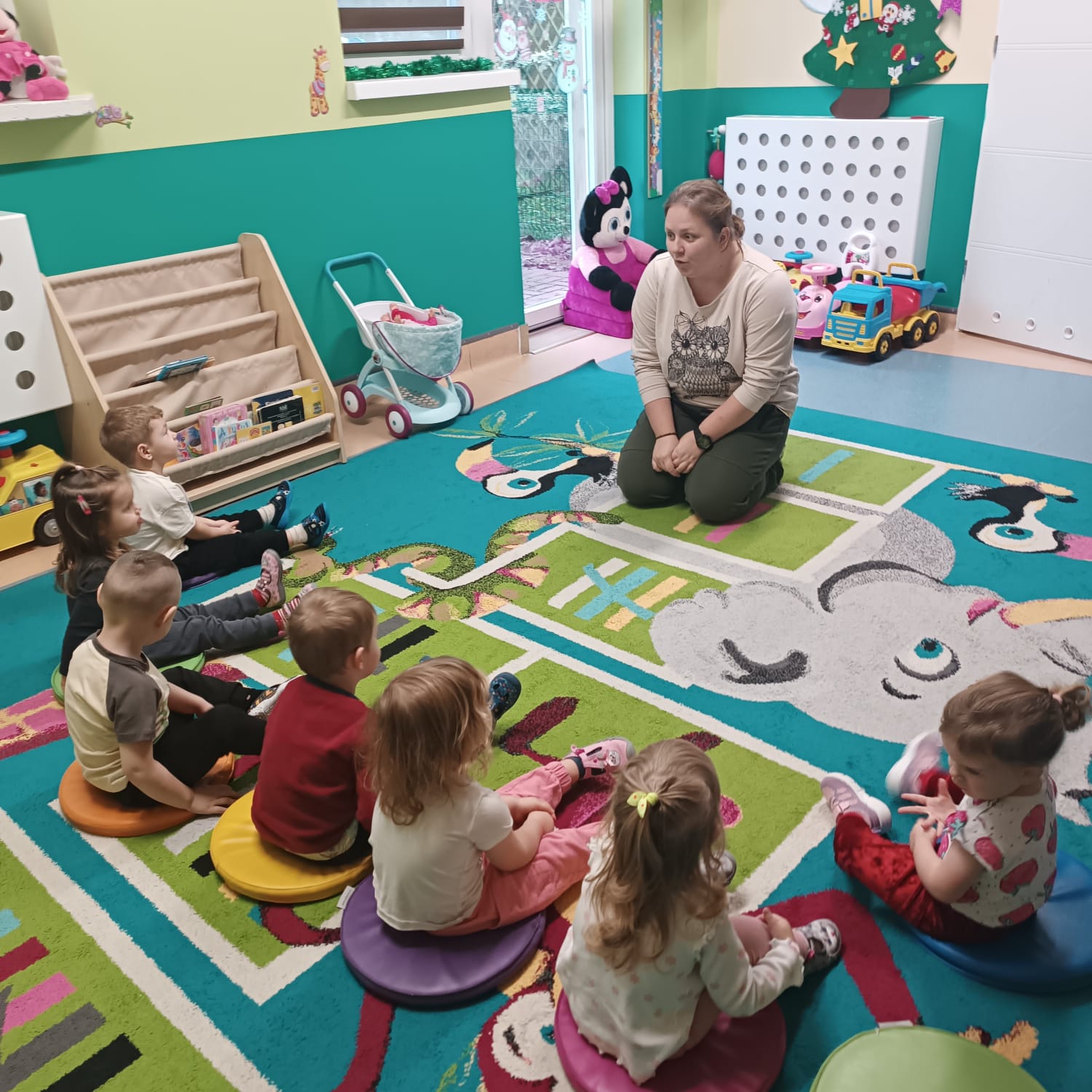Dzieci w skupieniu wysłuchały opowiadanej przez opiekunkę legendy o piernikach i dowiedziały się jak powstały "katarzynki".