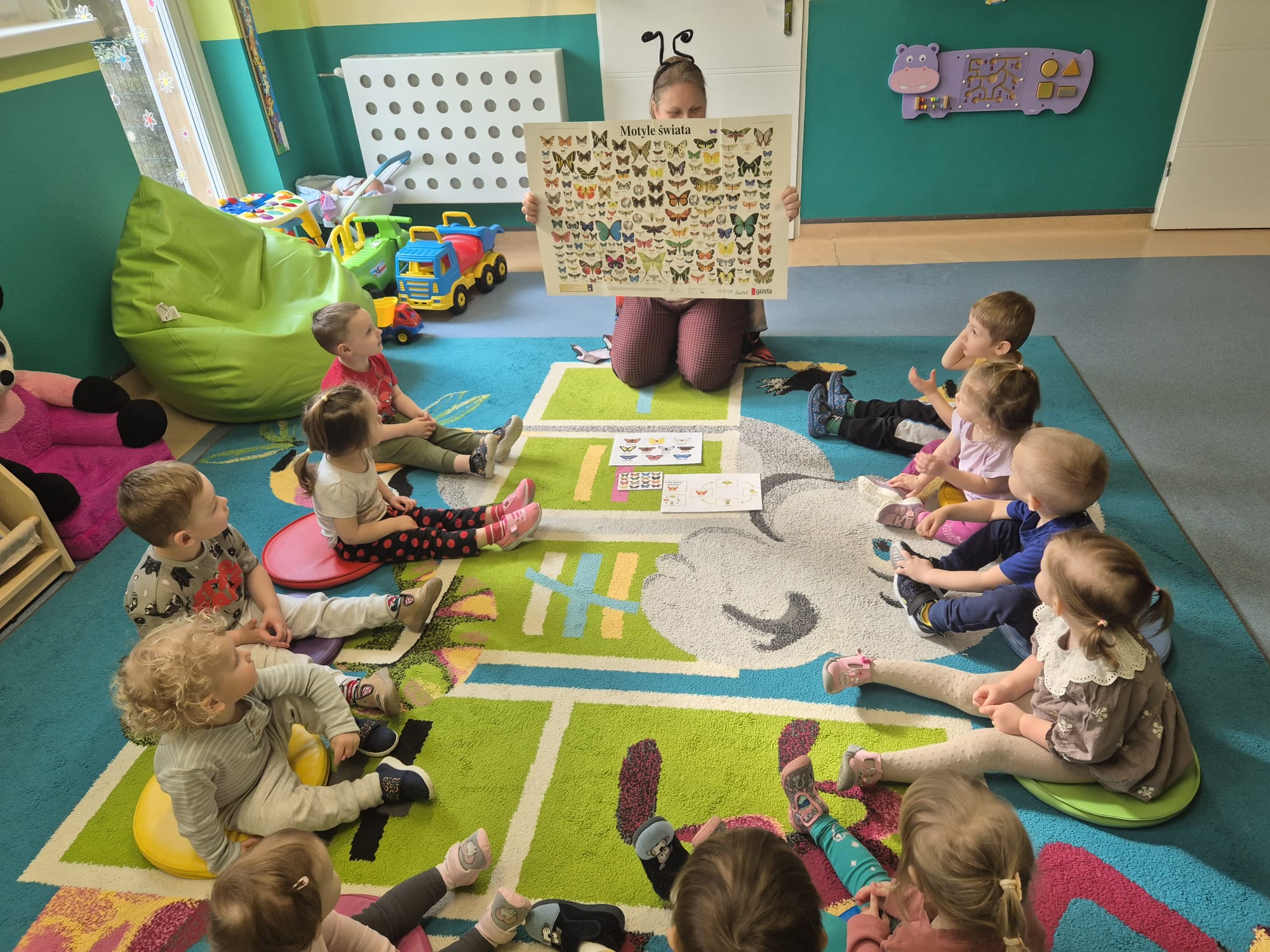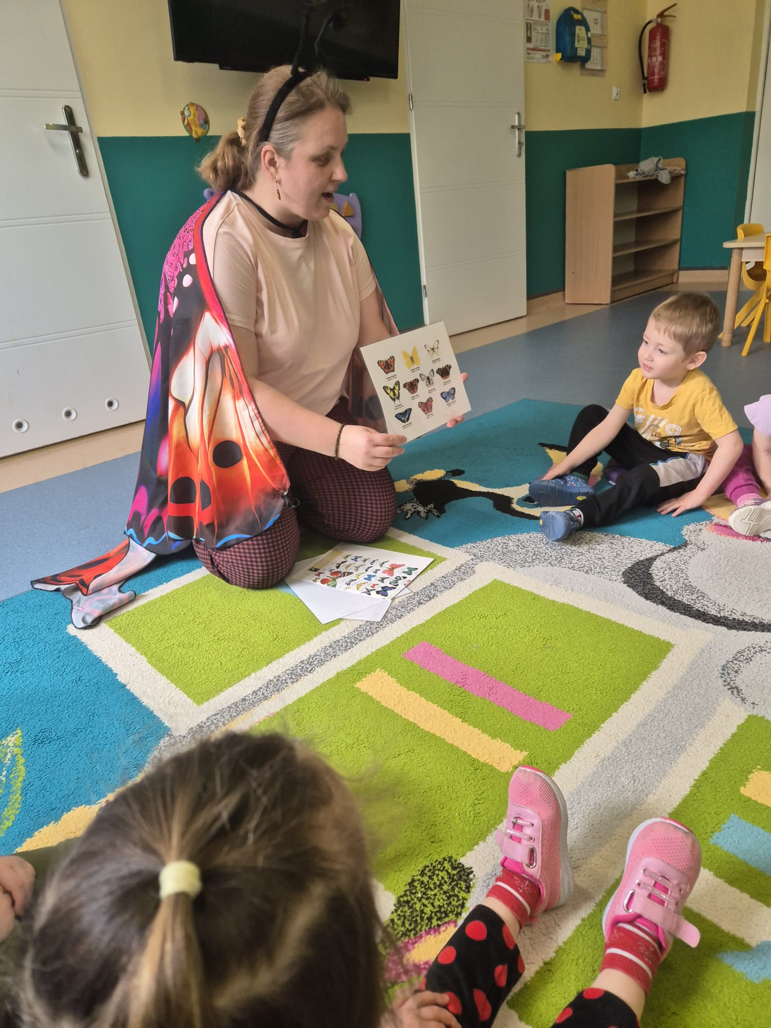 Dzieci obejrzały dokładnie zdjęcia motyli, zwracając uwagę na ich barwne ubarwienie.