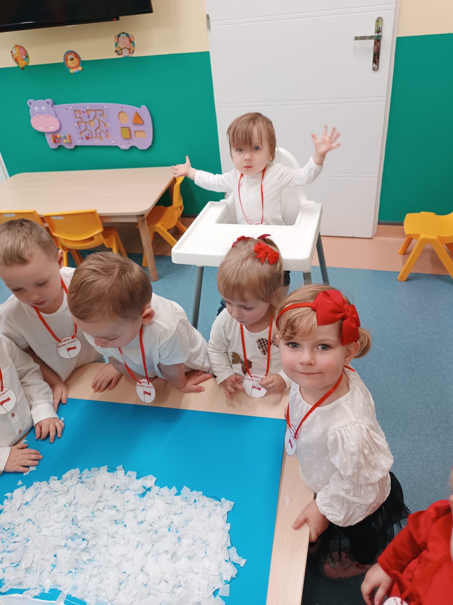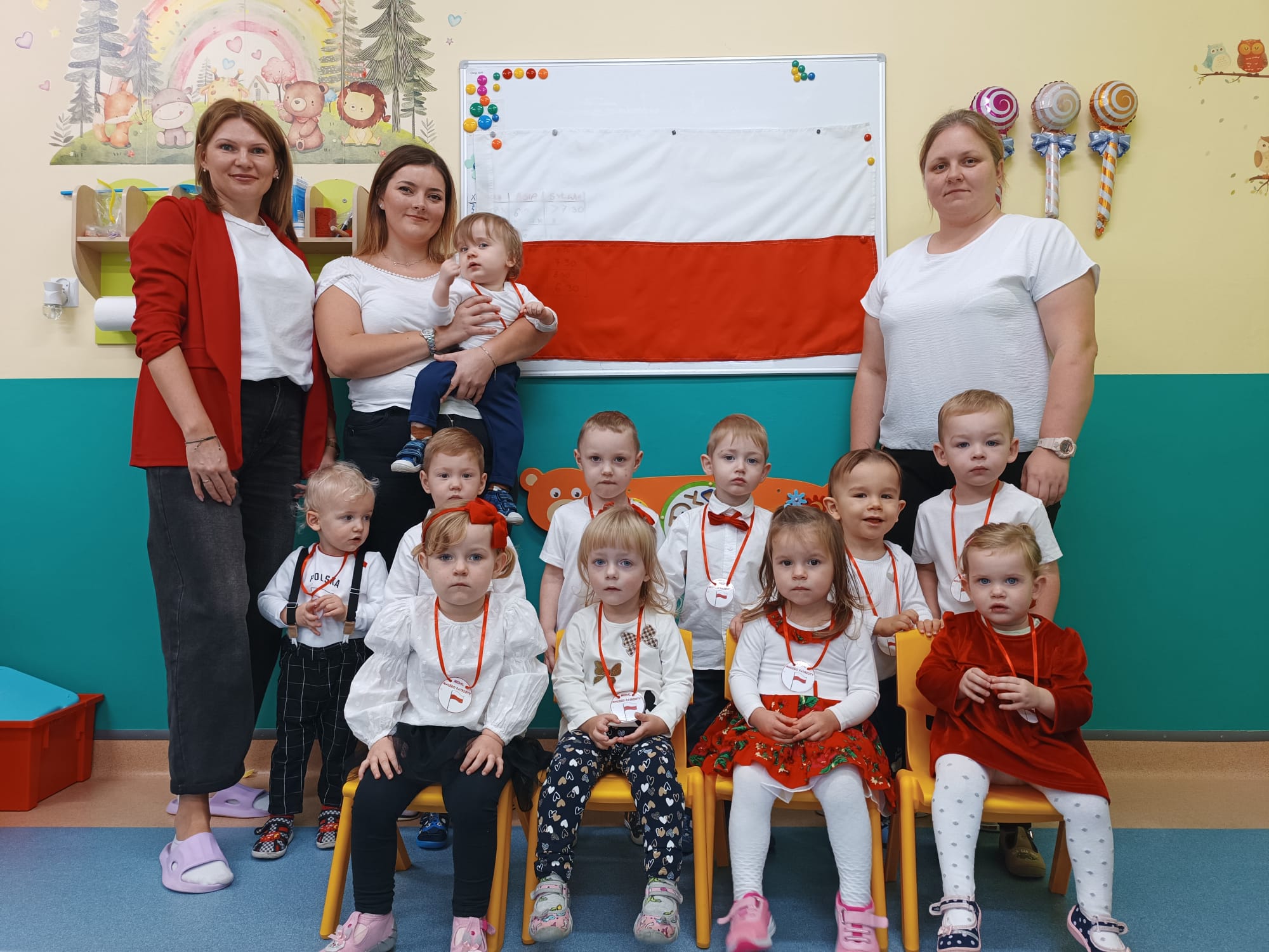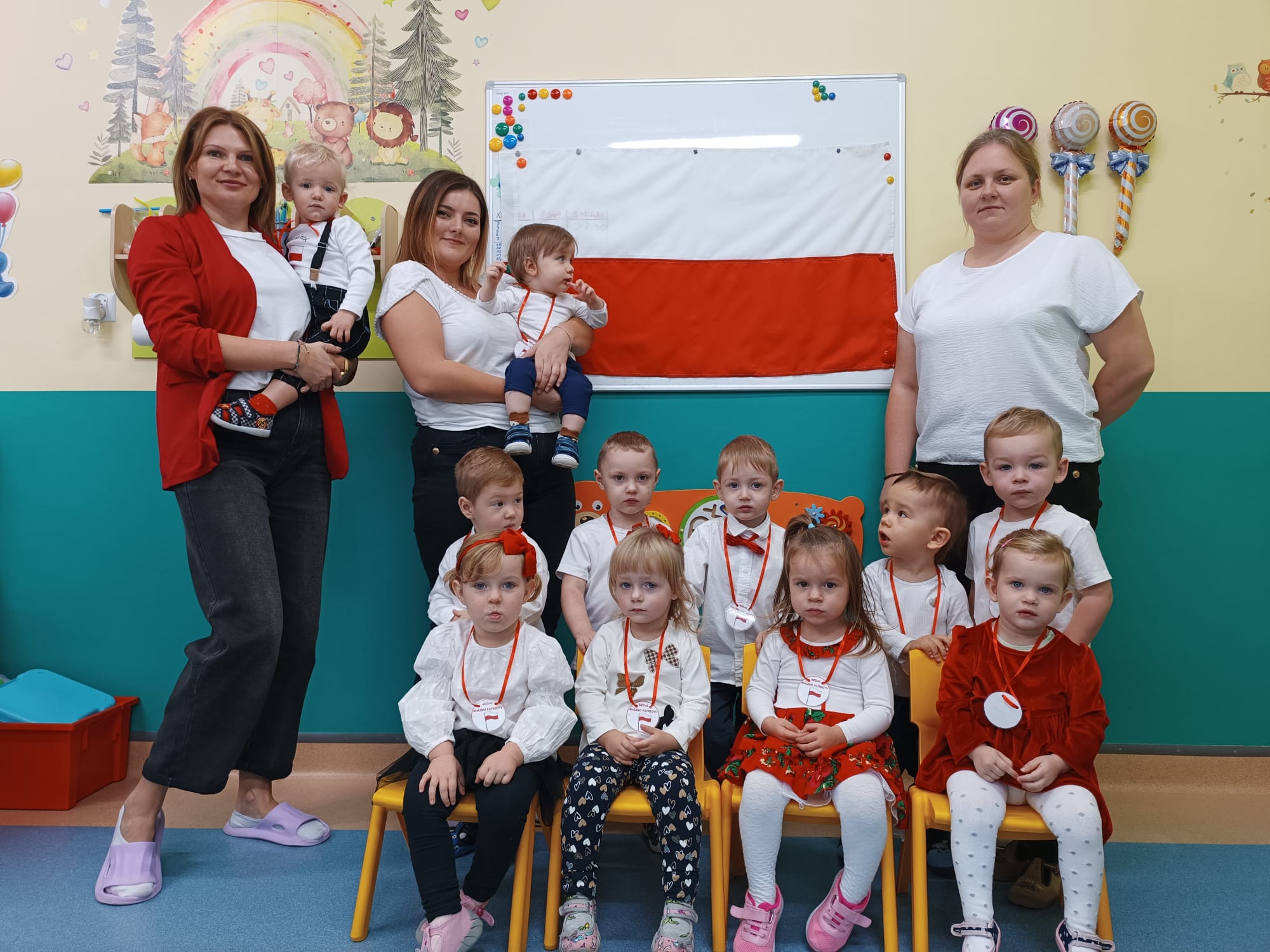 Dziś w Żłobku świętowaliśmy Dzień Niepodległości. Maluchy w galowym ubiorze prezentowały się bardzo elegancko.