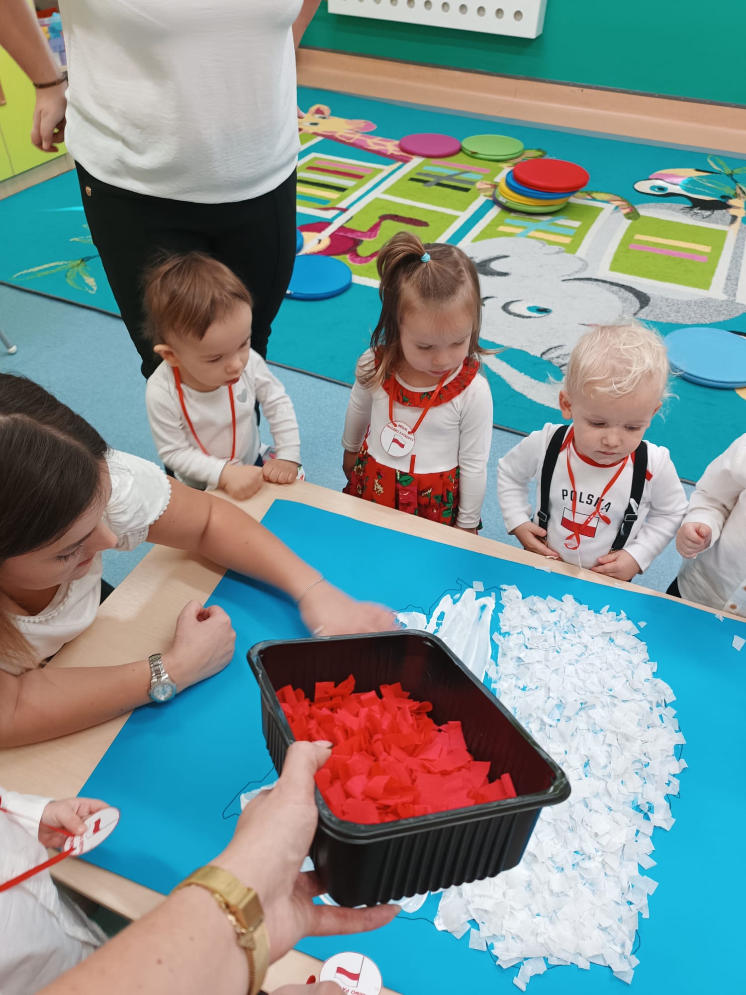 Dzieci poznały symbole Polski, wysłuchały hymnu Polski oraz poloneza.