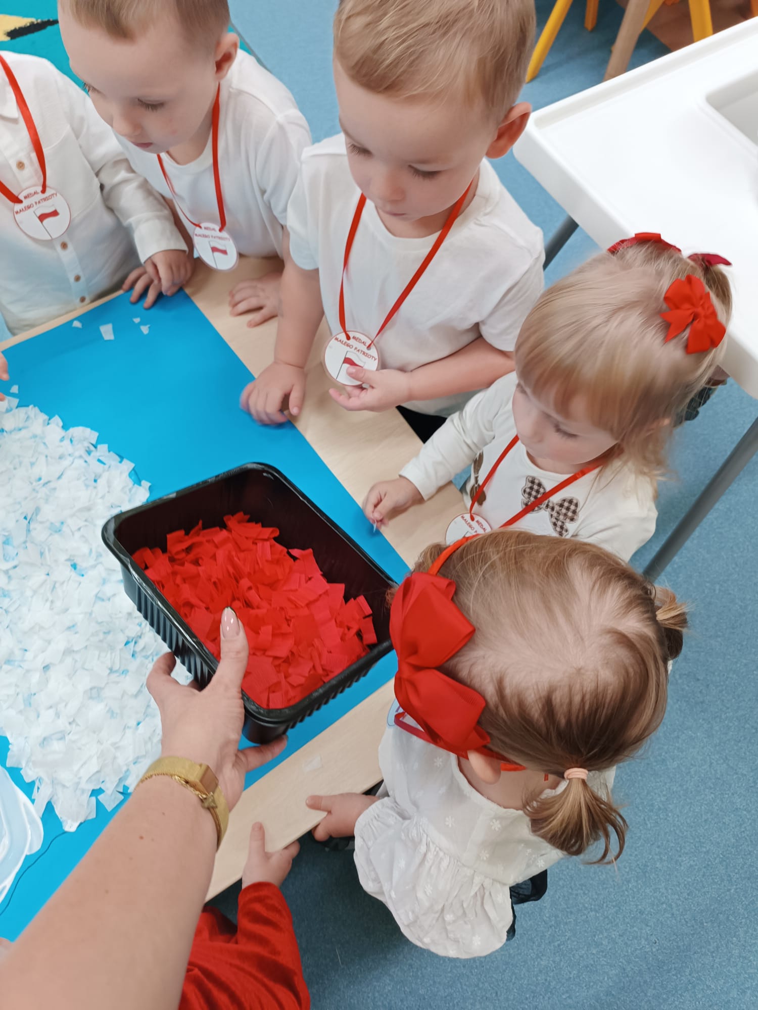 Każde dziecko zostało odznaczone medalem Małego Patrioty za dzisiejszy udział w zajęciach.