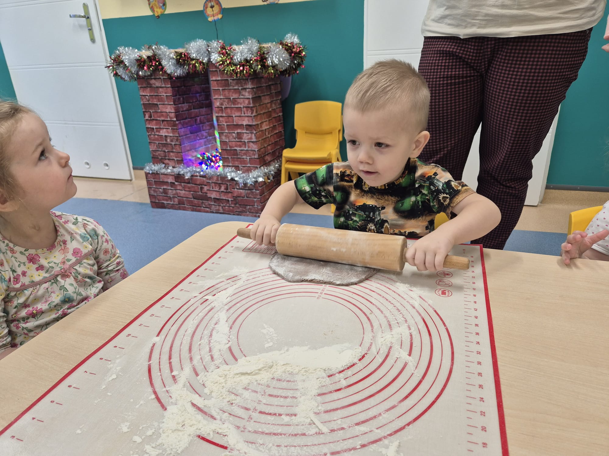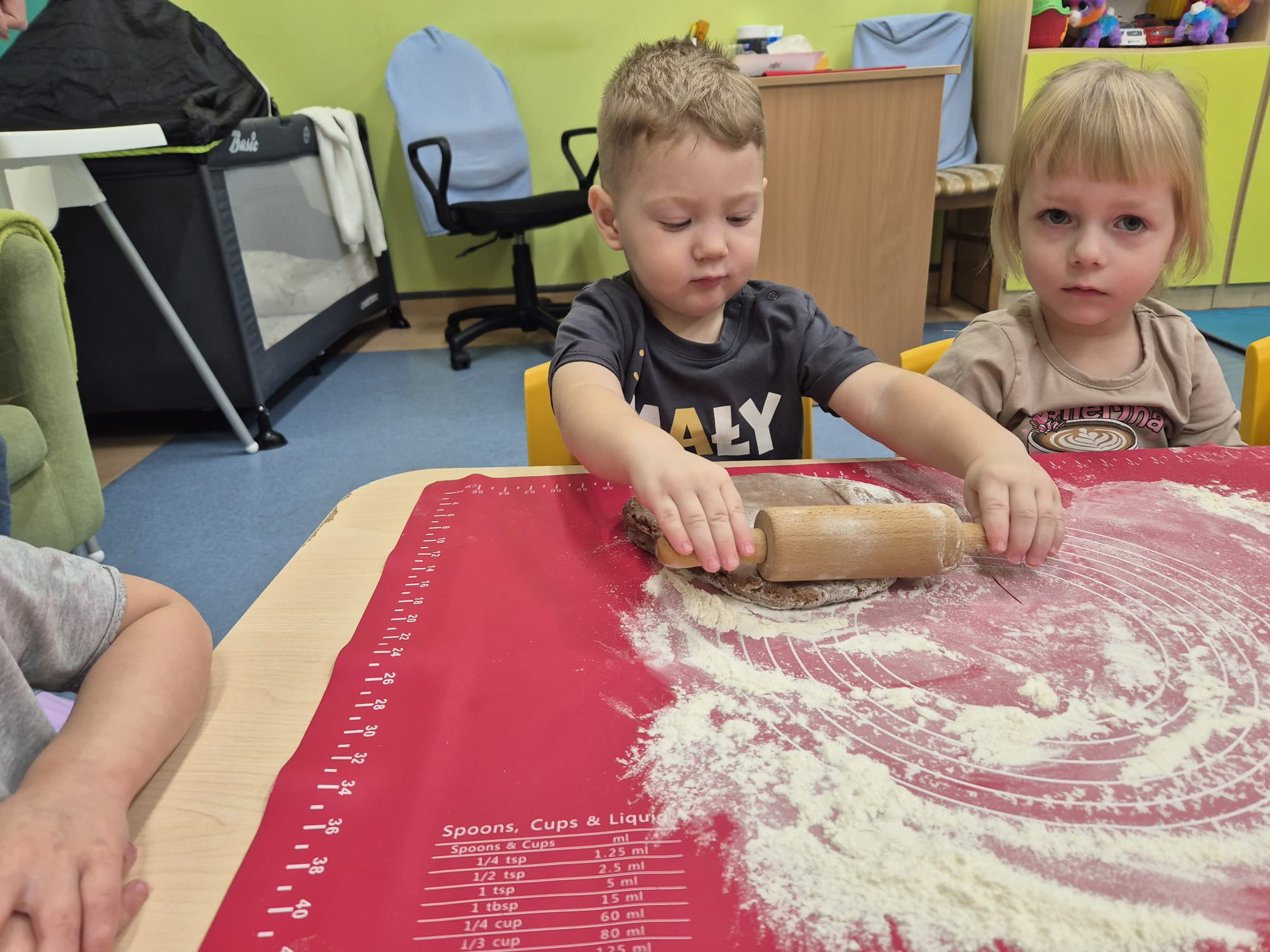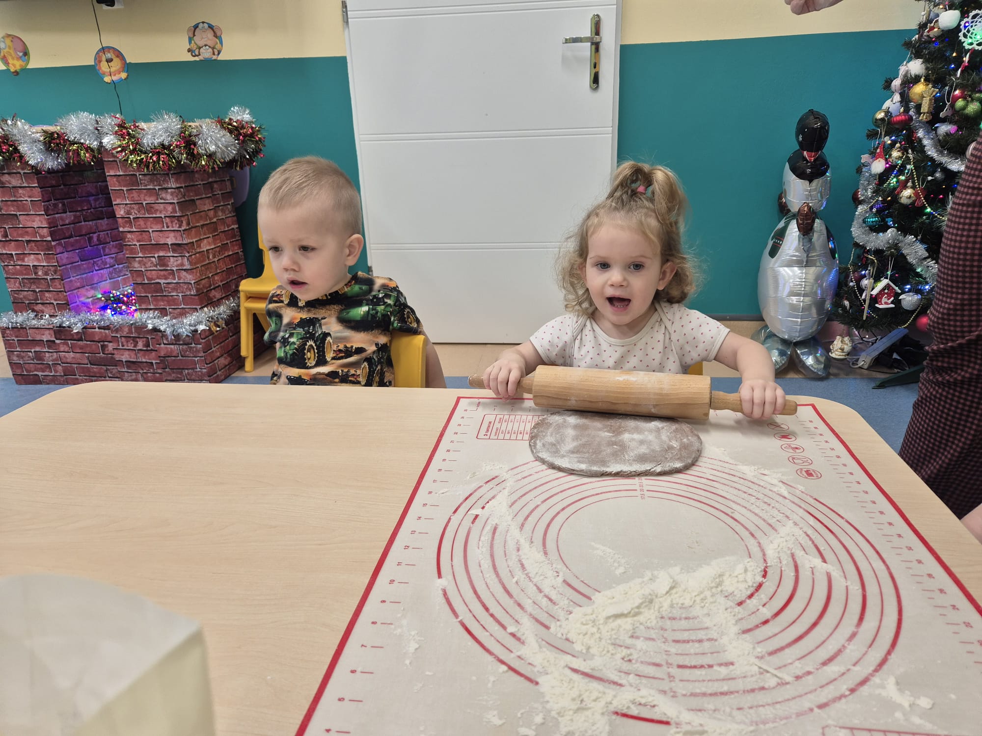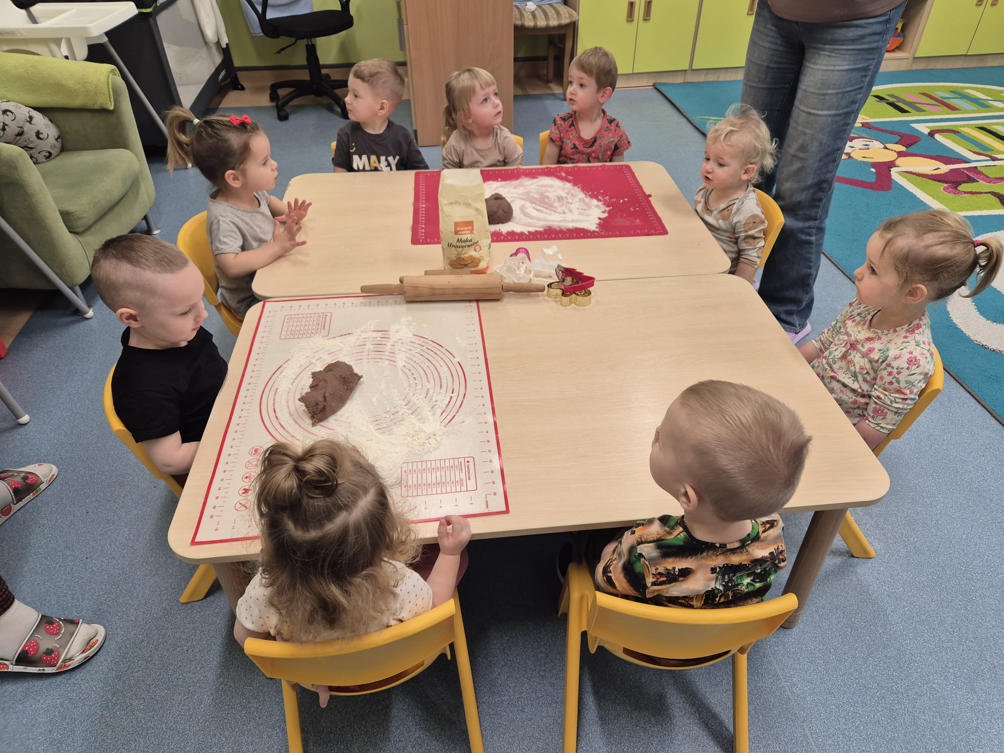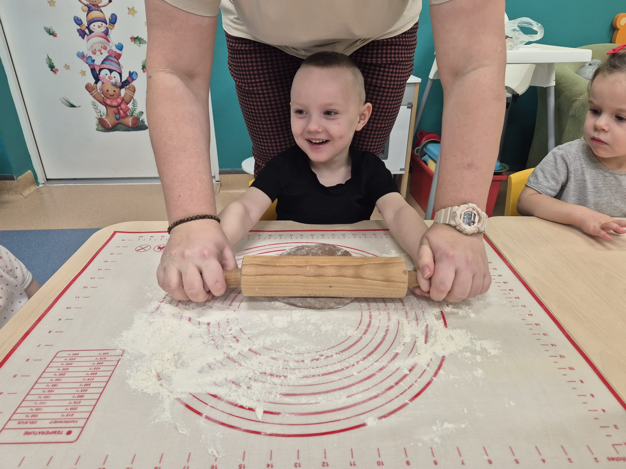 Dzisiejsze zajęcia bardzo podobały się dzieciom. Ugniatanie i wałkowanie aromatycznego ciasta cieszyło wszystkie dzieci.