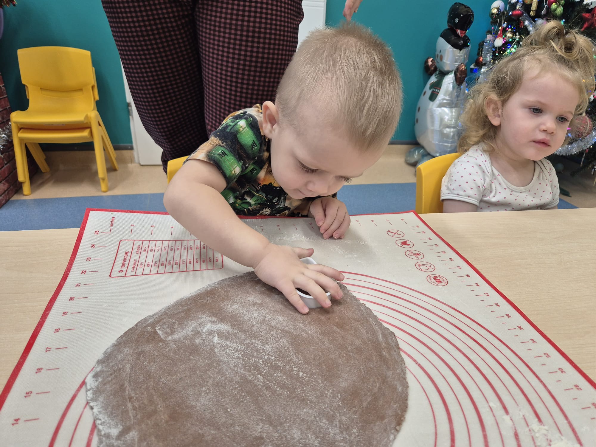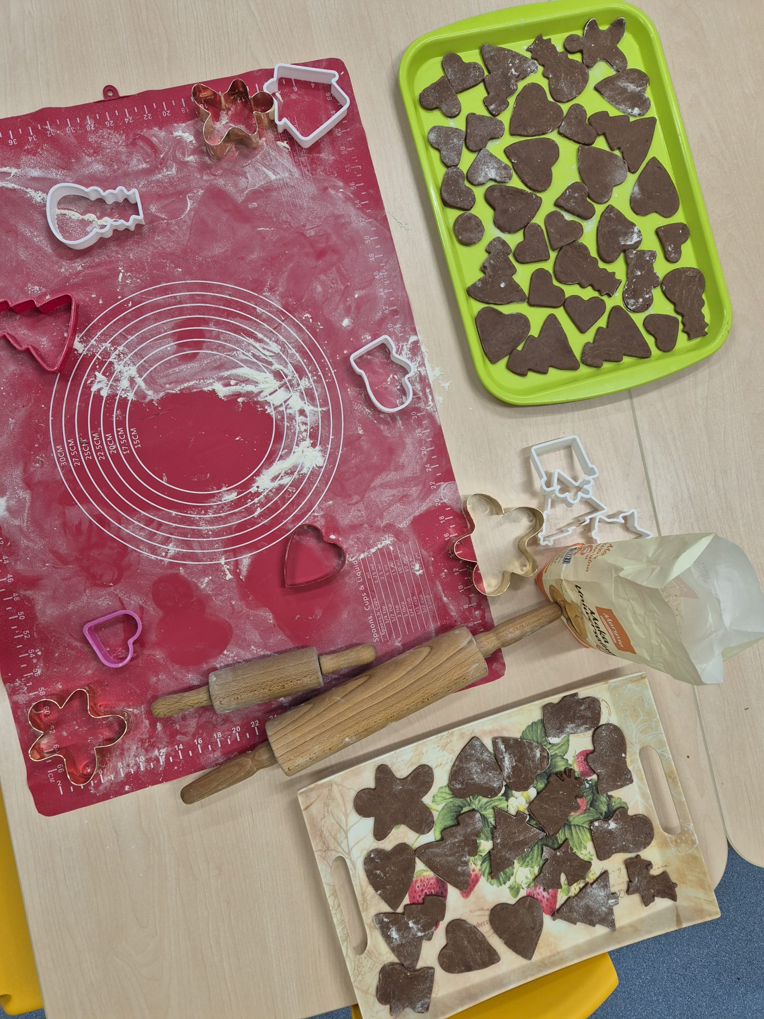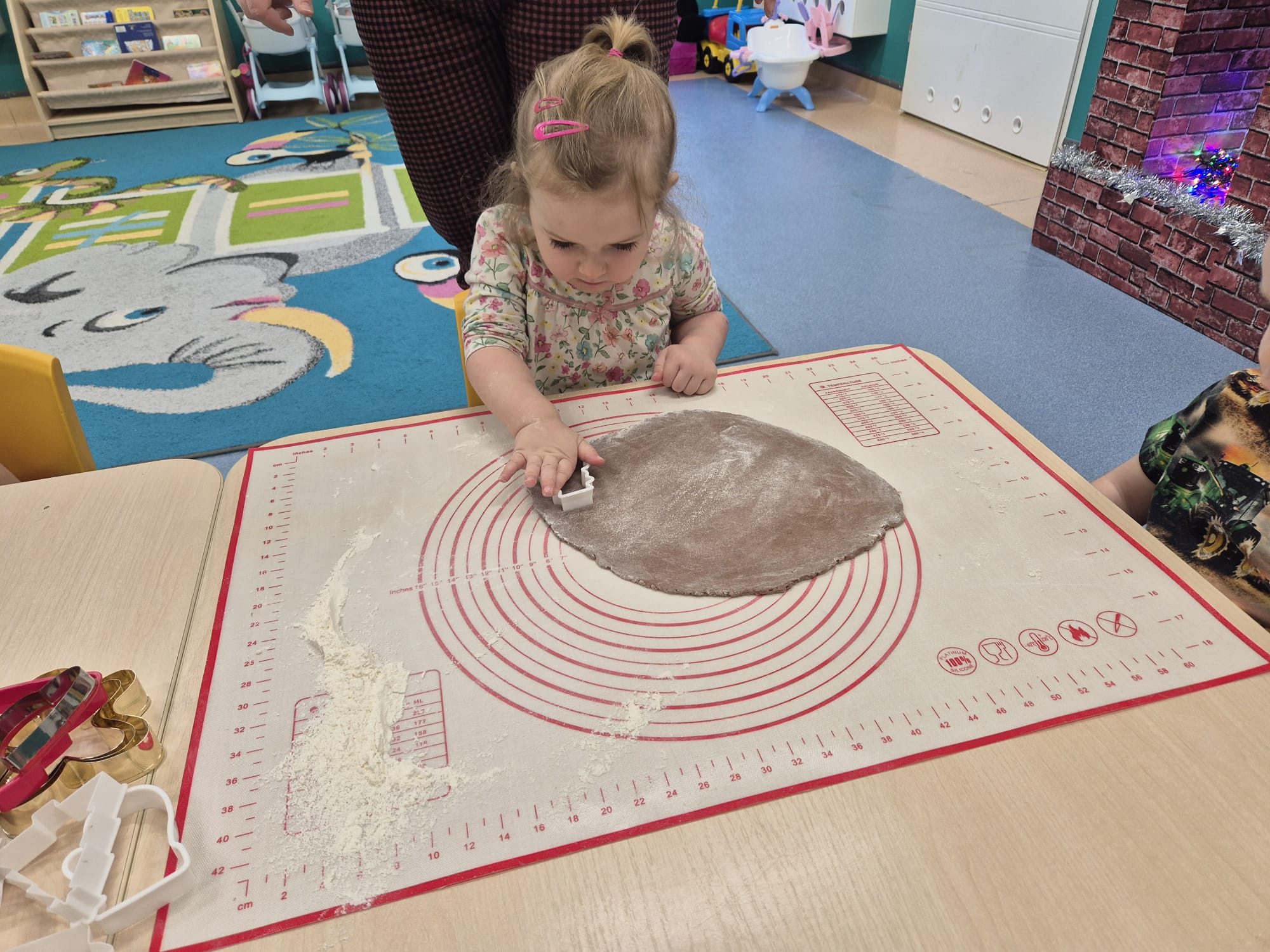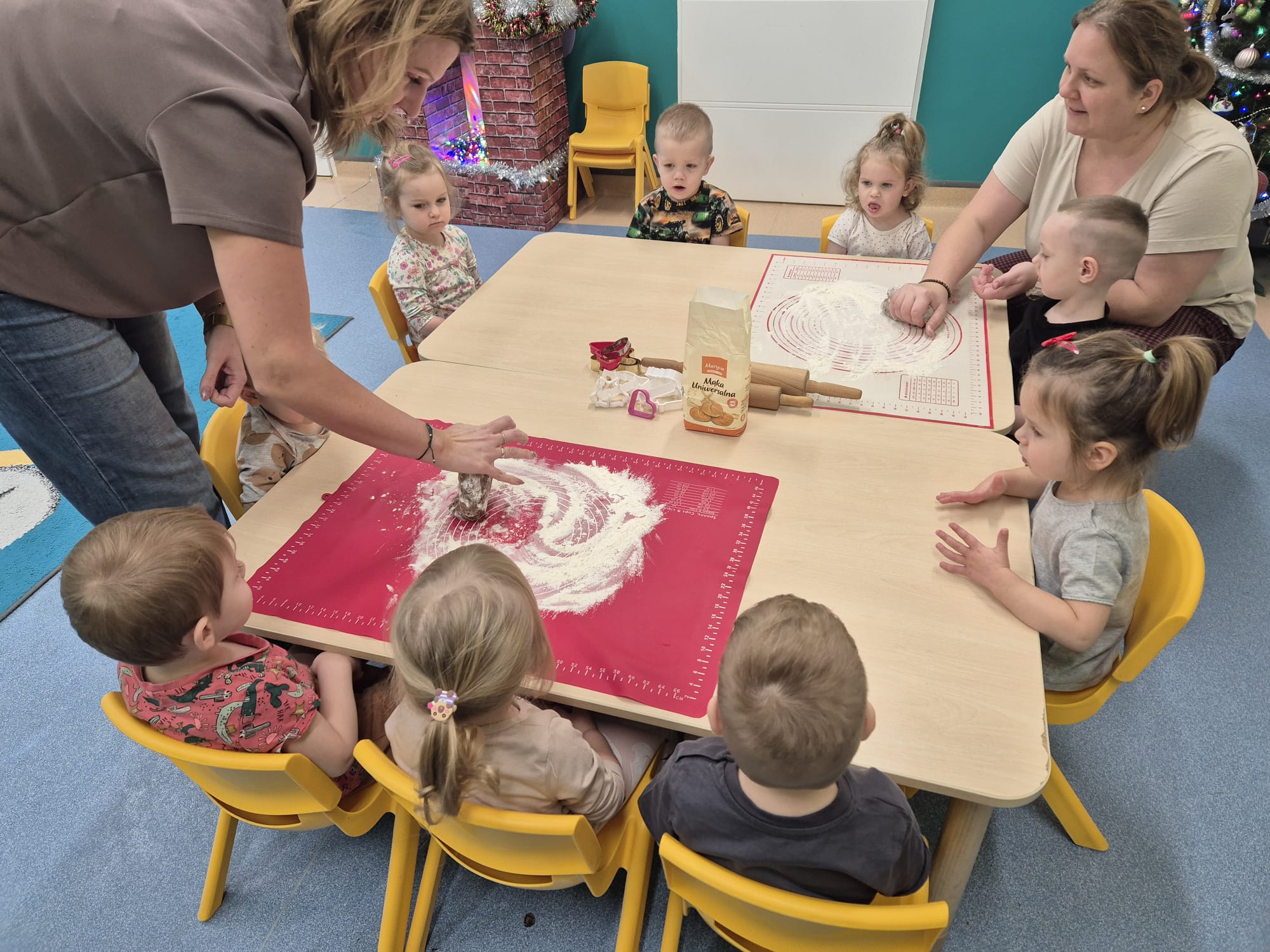 Mali cukiernicy sprawnie wykrawali pierniczki w świątecznych kształtach, które zostały upieczone przez ciocię , a ich zapach długo unosił się w powietrzu.