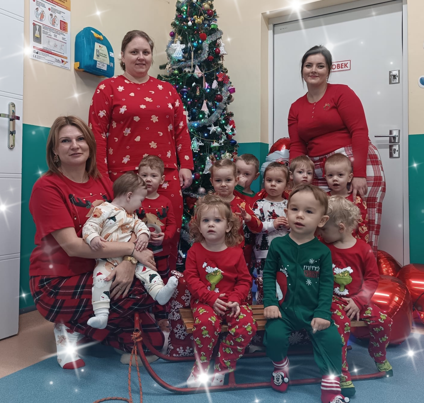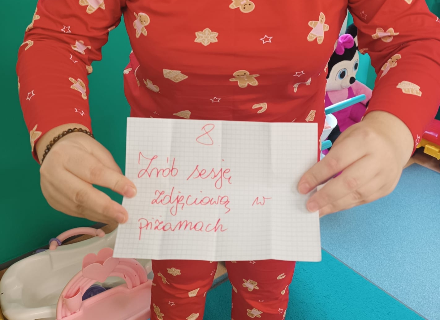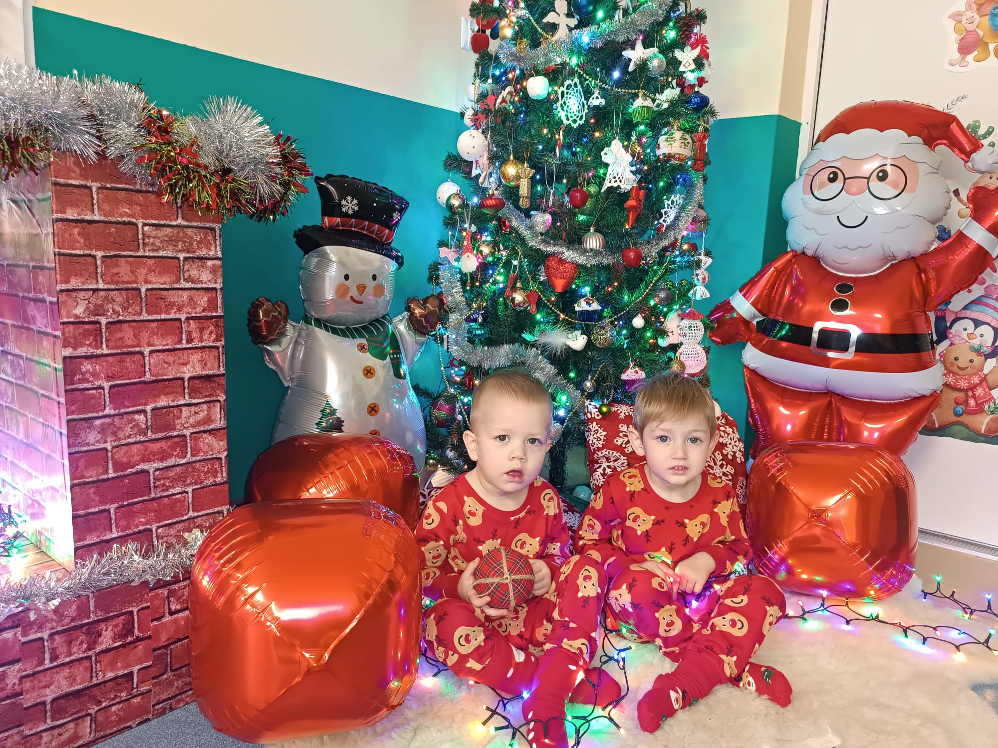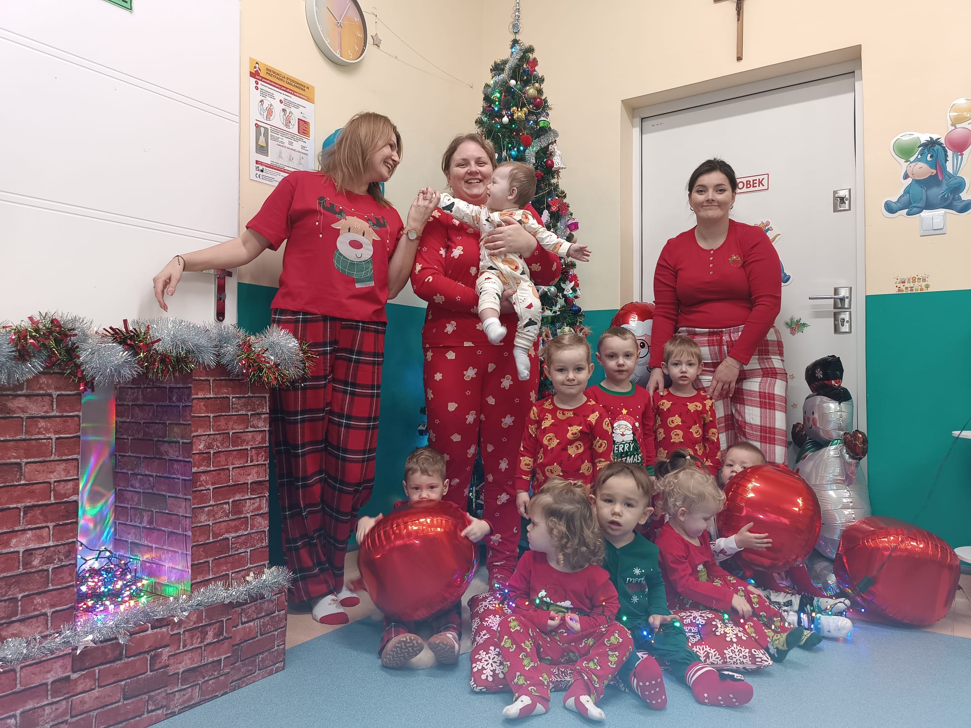 Kolejne zadanie z Kalendarza Adwentowego- Zrób sesję zdjęciową w piżamach, a że jest czas przedświąteczny dzieci i opiekunki założyły piżamki z motywem świątecznym.