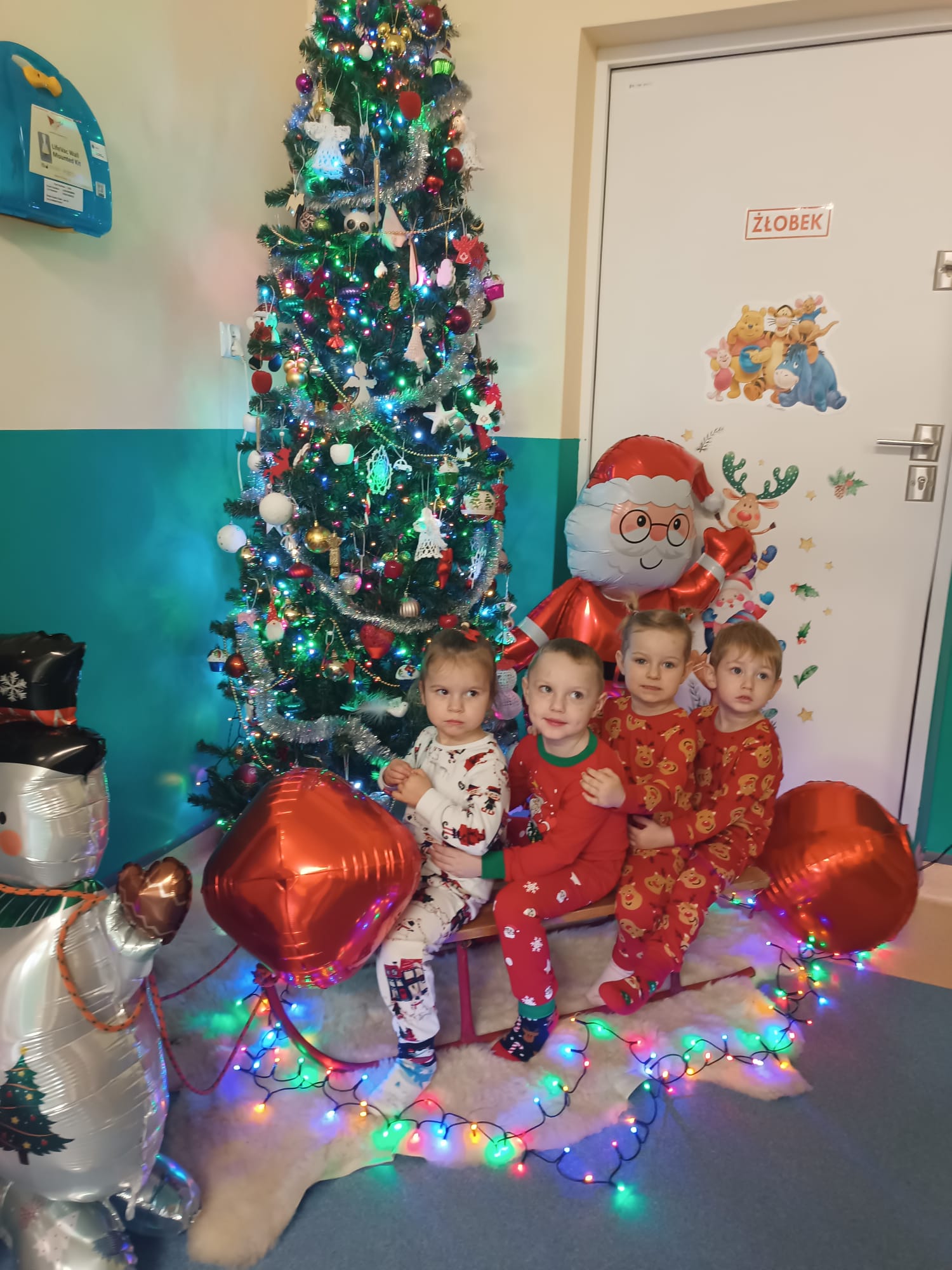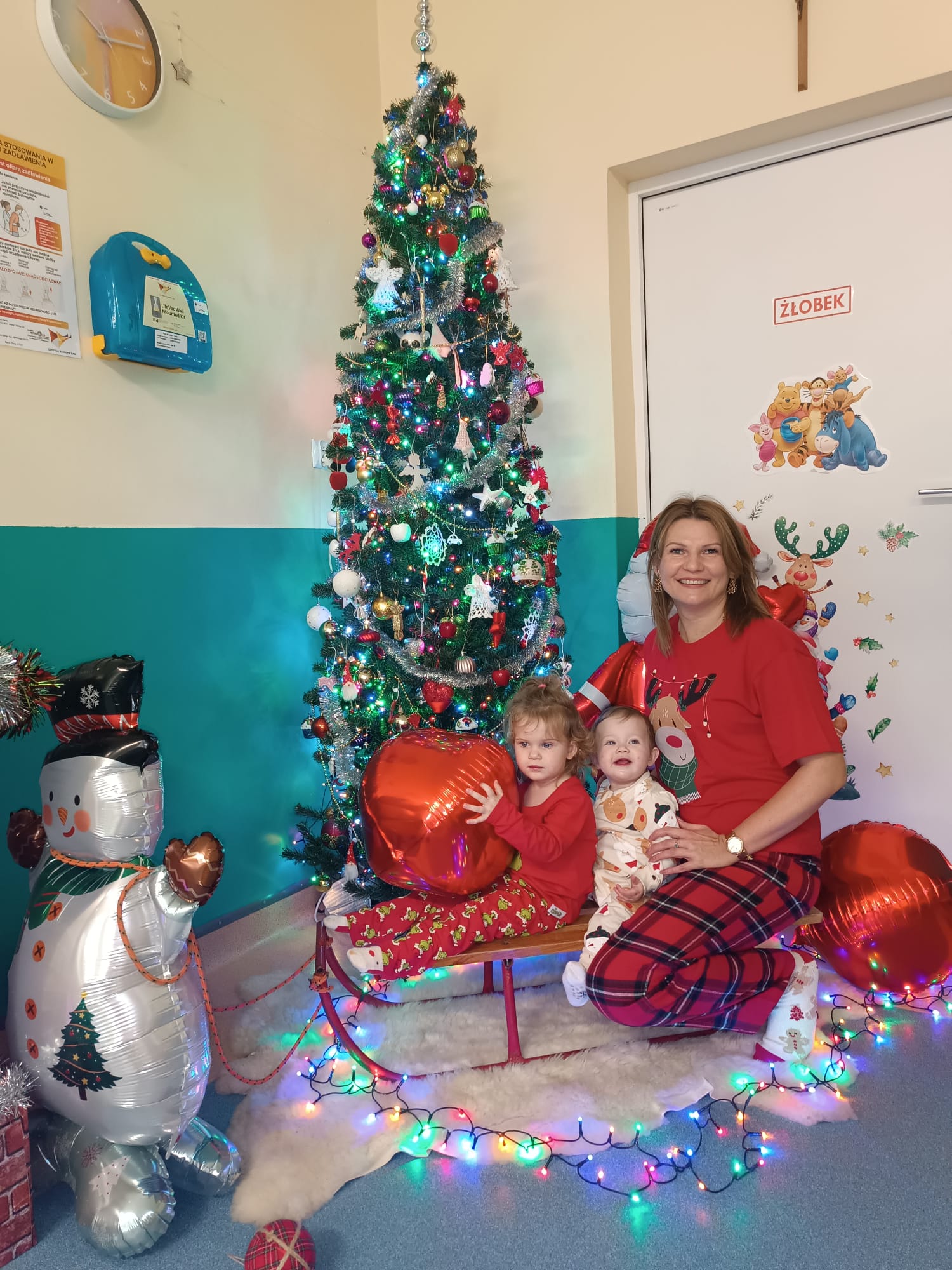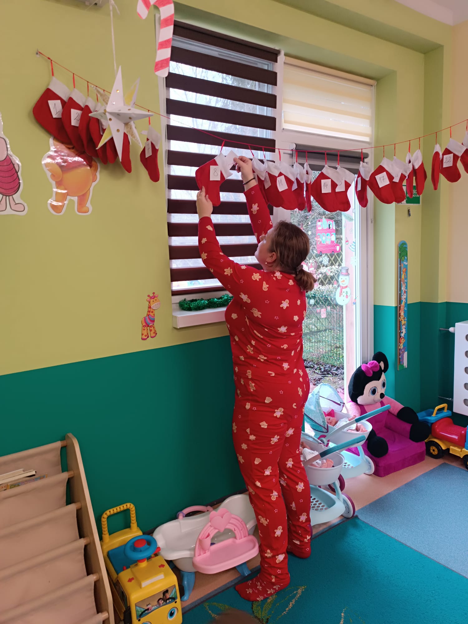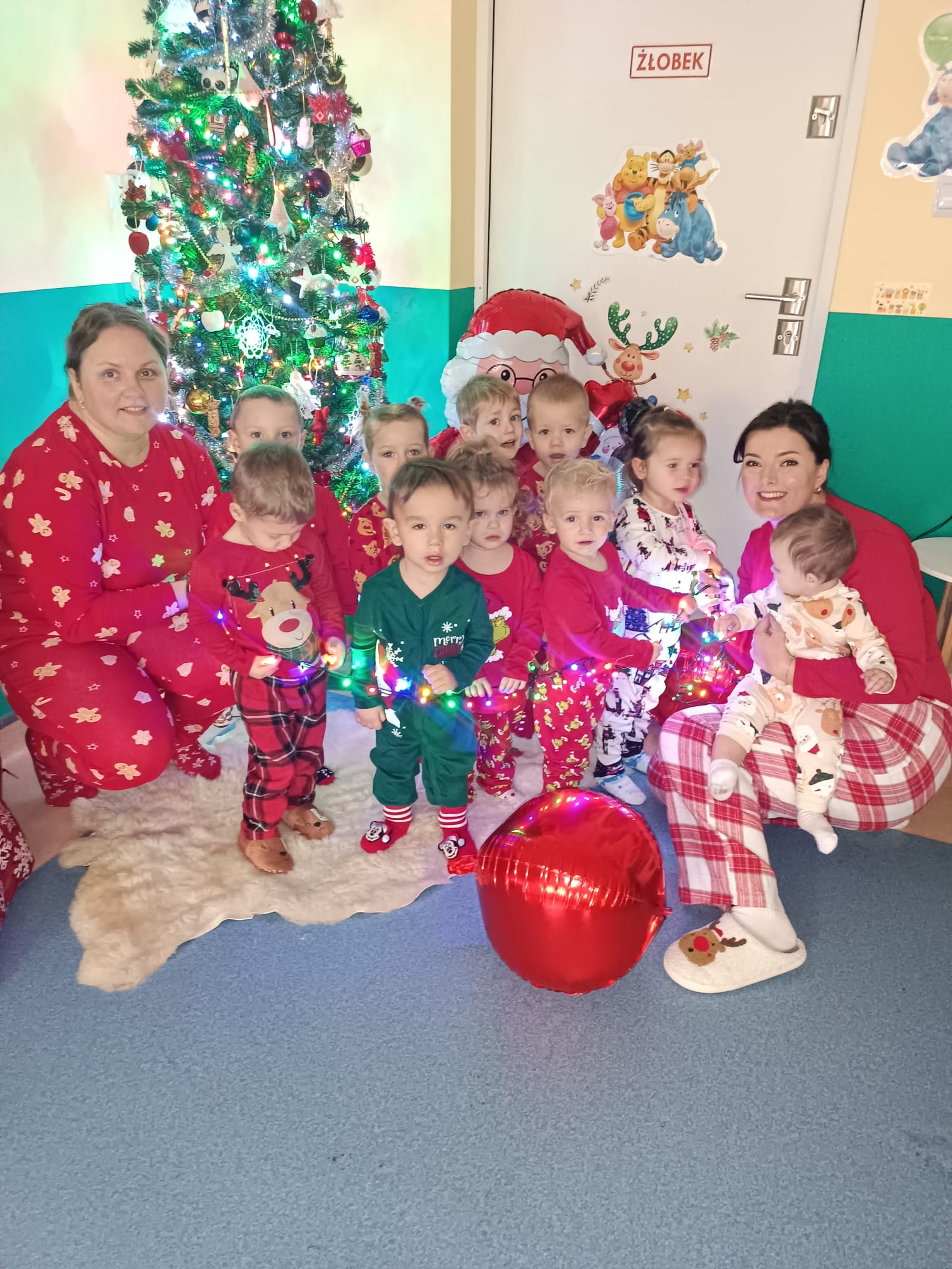 Kolejne zadanie z Kalendarza Adwentowego- Zrób sesję zdjęciową w piżamach, a że jest czas przedświąteczny dzieci i opiekunki założyły piżamki z motywem świątecznym.