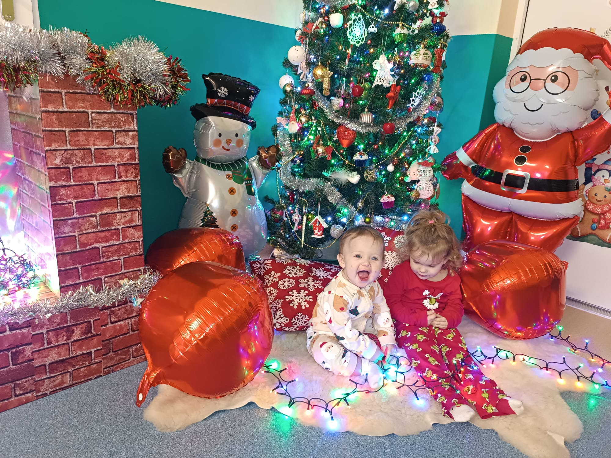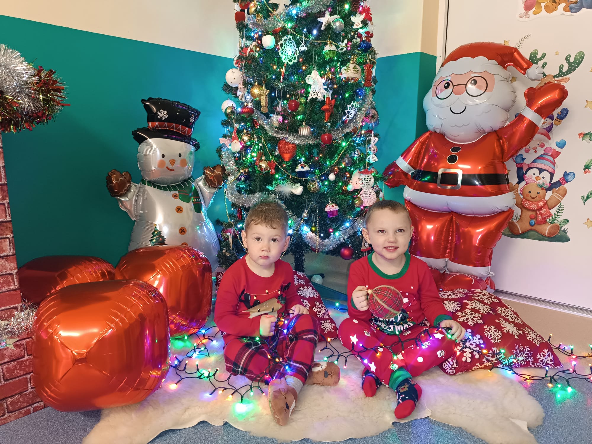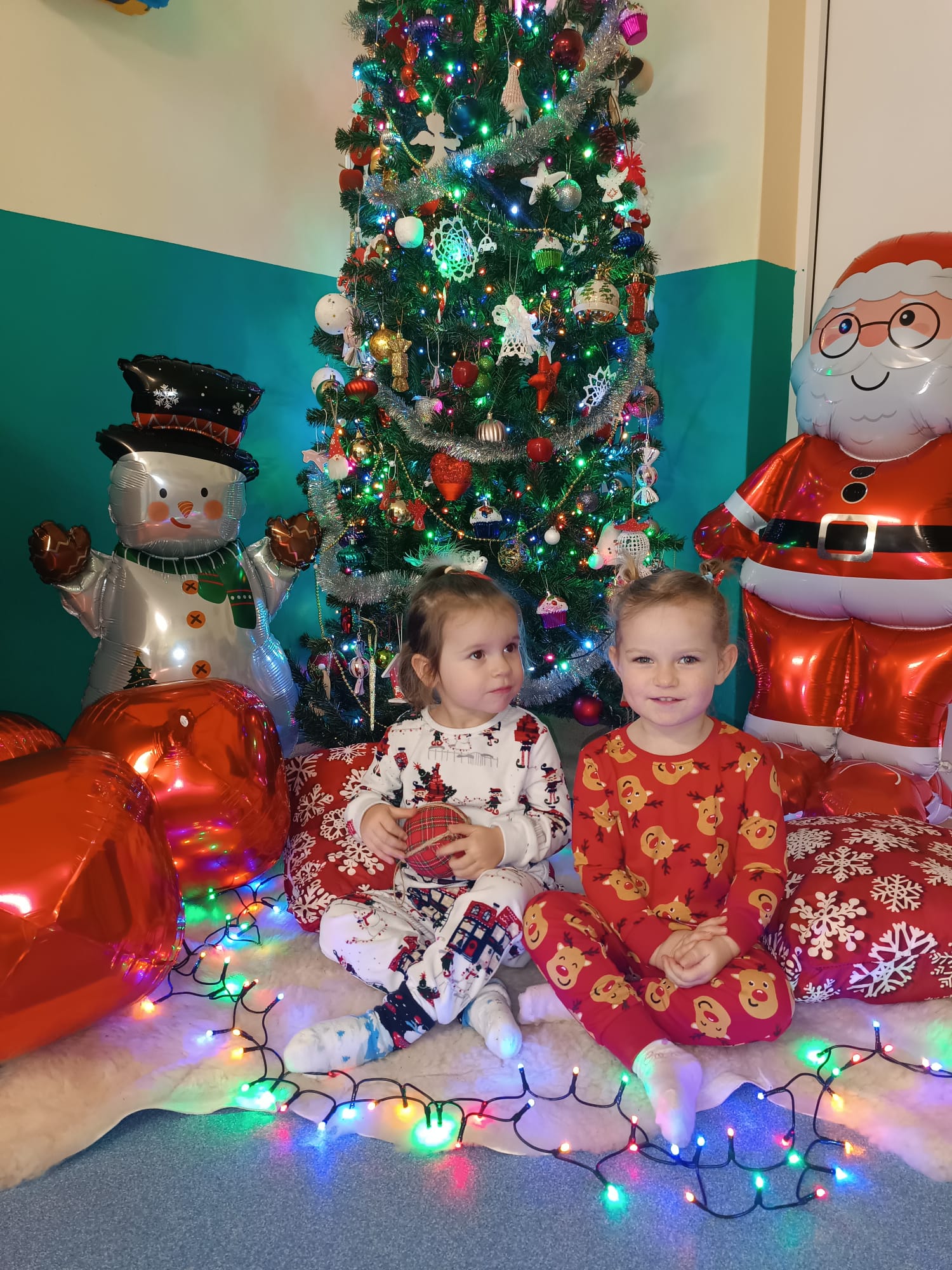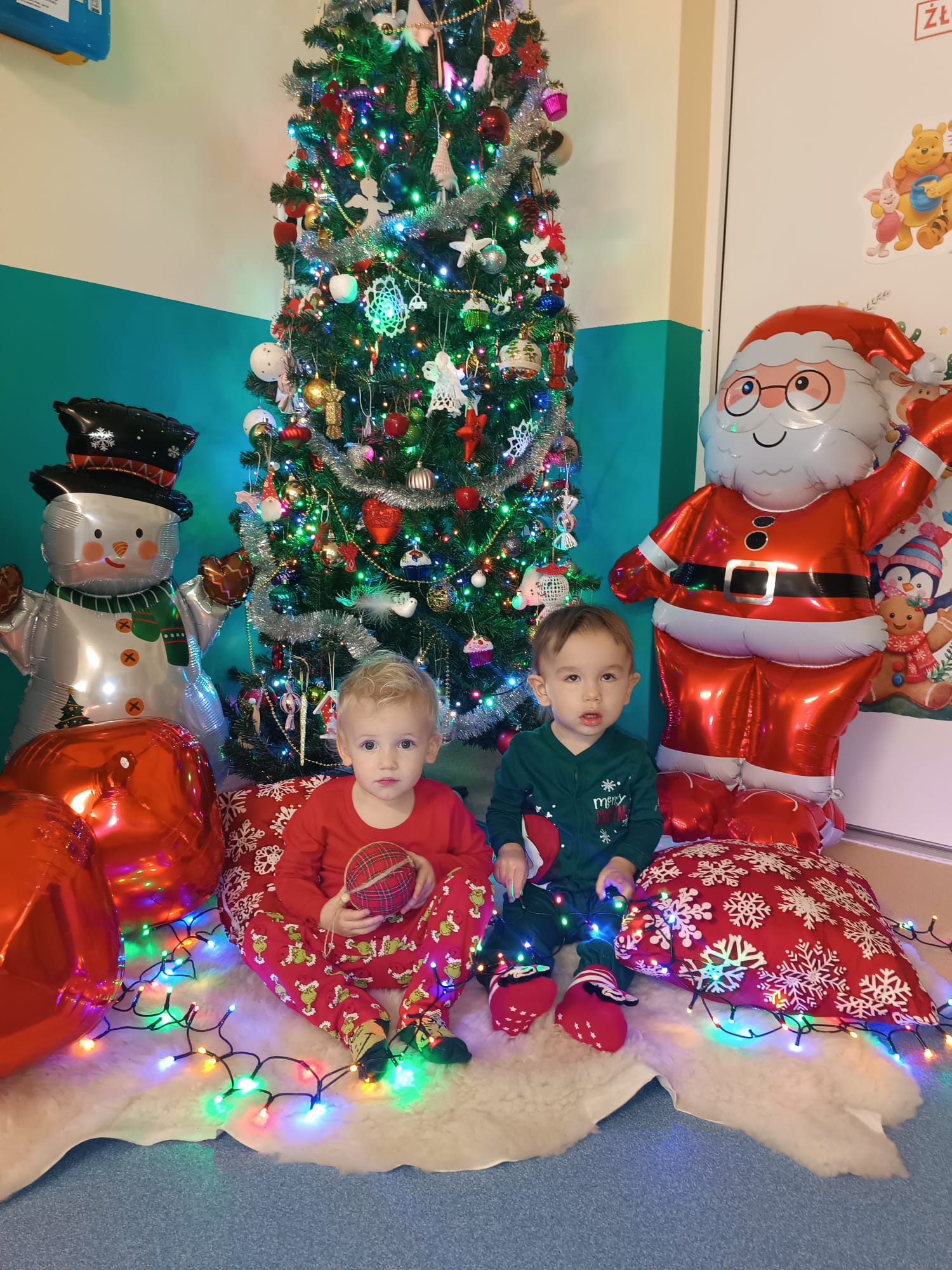 Kolejne zadanie z Kalendarza Adwentowego- Zrób sesję zdjęciową w piżamach, a że jest czas przedświąteczny dzieci i opiekunki założyły piżamki z motywem świątecznym.