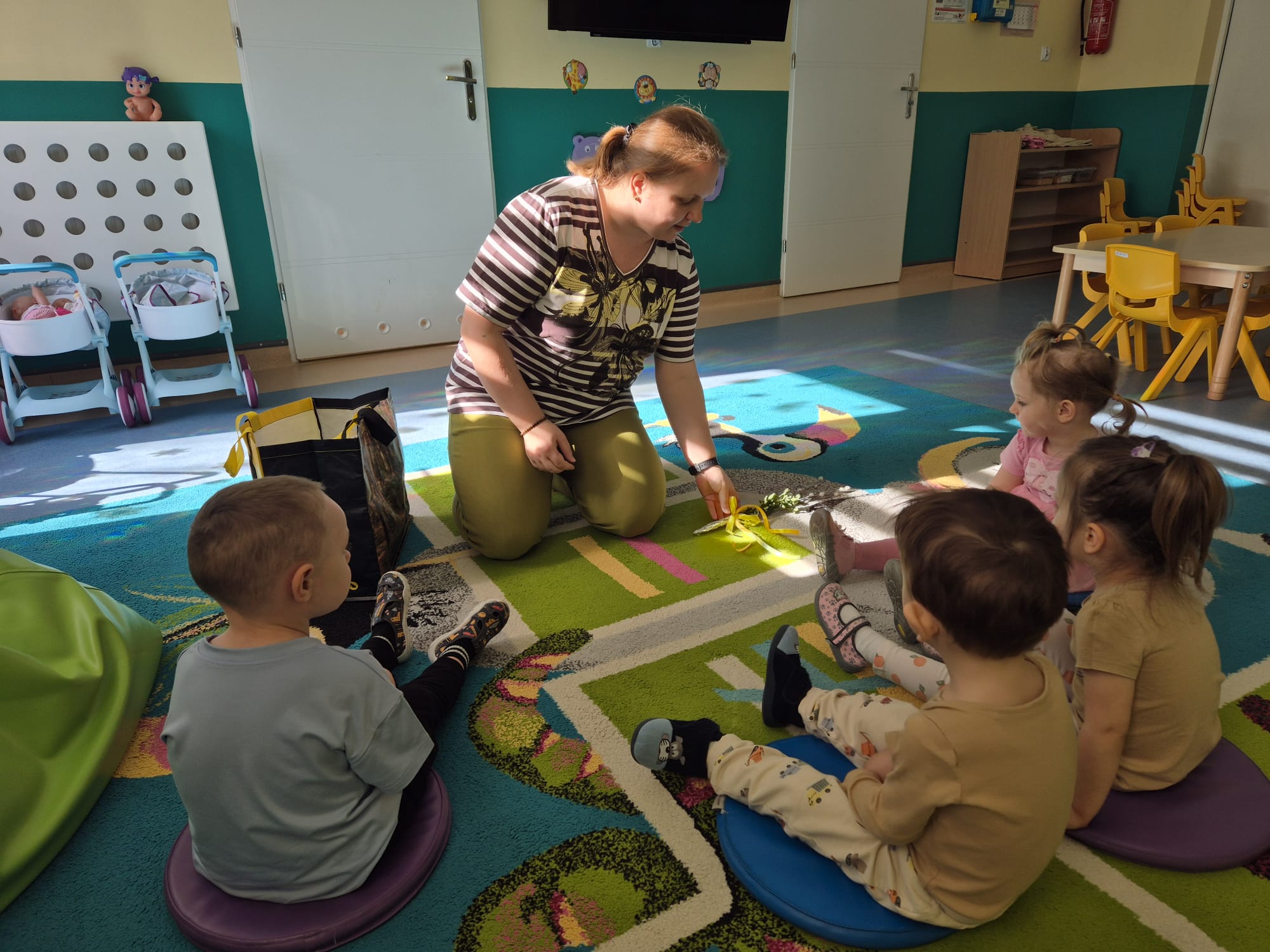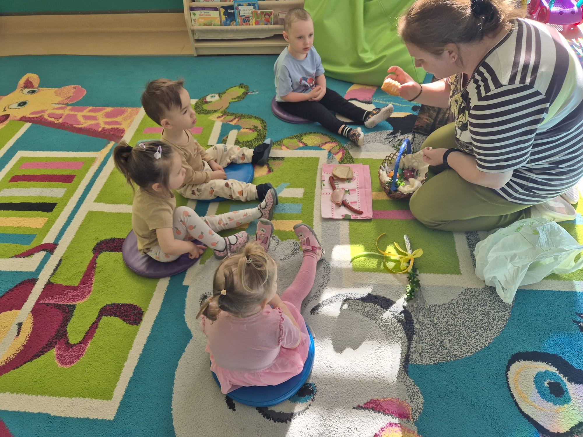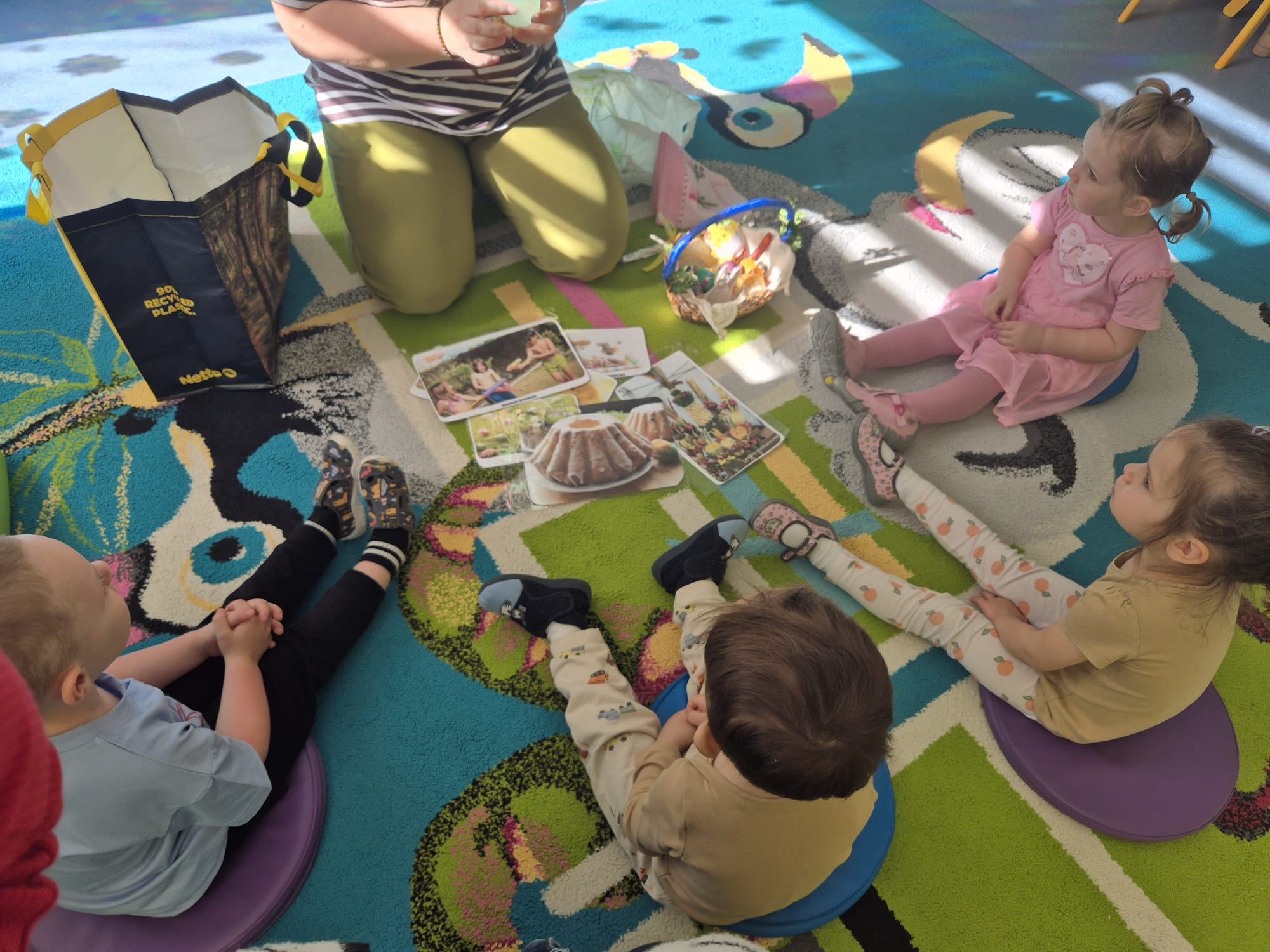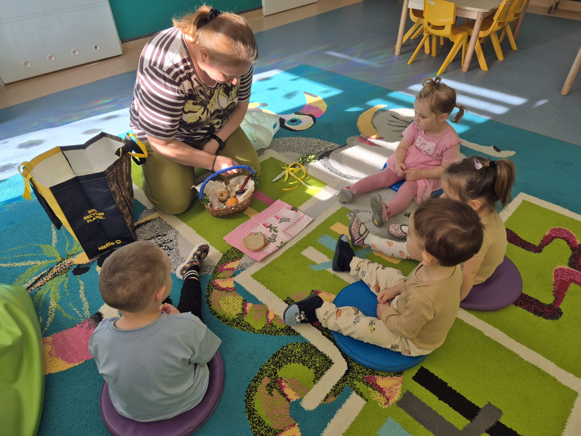 Opiekunka opowiedziała dzieciom o tradycjach Świąt Wielkanocnych.