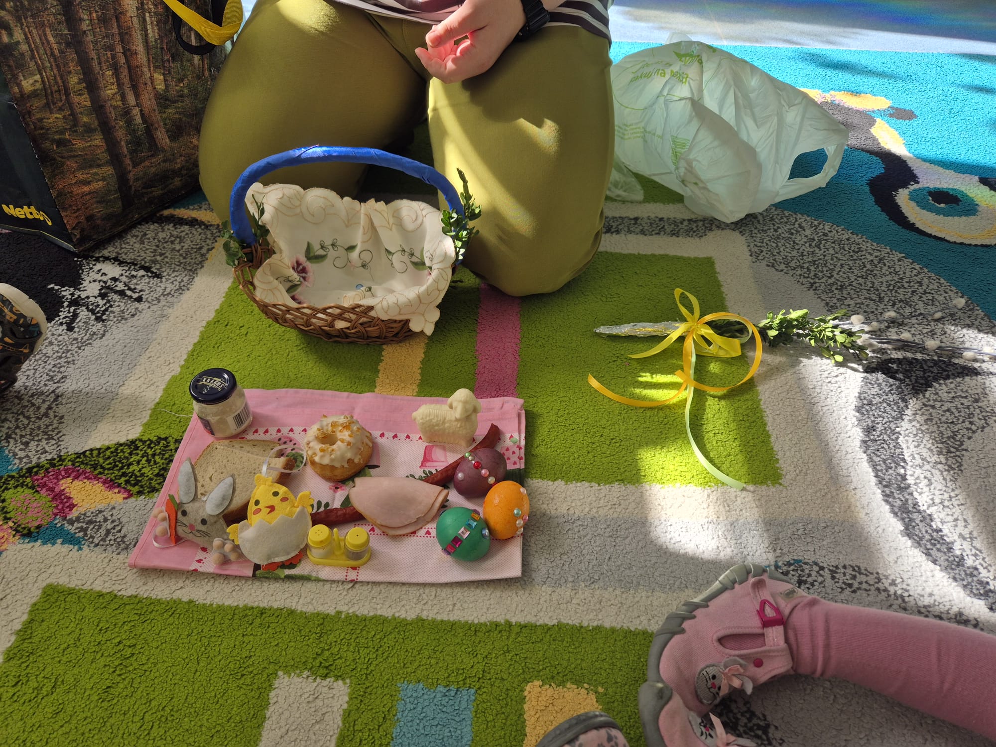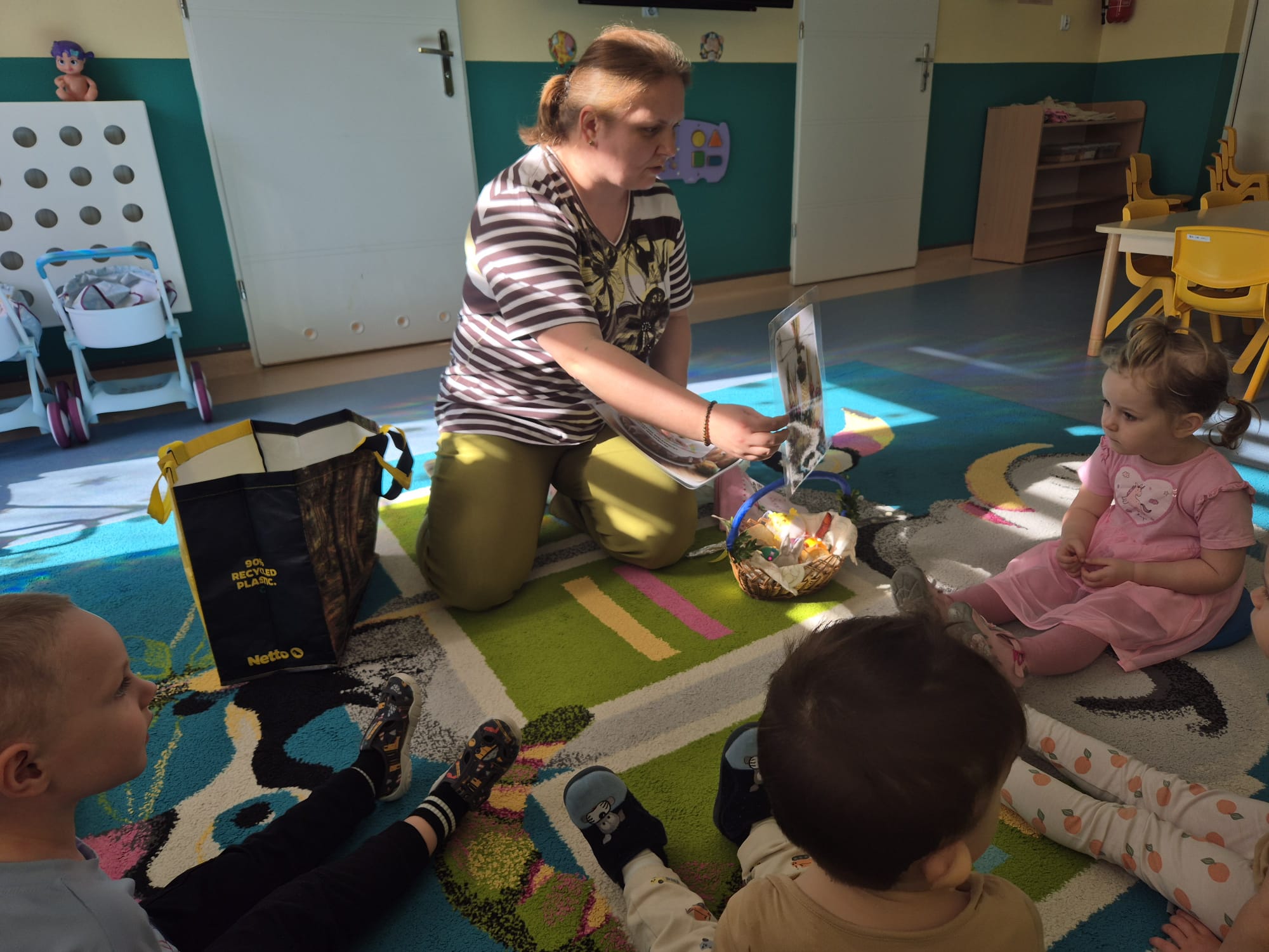 Pokazała maluchom jak wygląda święconka i co powinno się znaleźć w koszyczku oraz jakie są symbole Wielkanocy.
